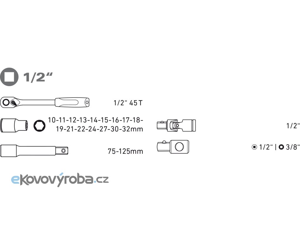 | hlavice nástrčné | 1/2": 10-11-12-13-14-15-16-17-18-19-21-22-24-27-30-32mm |