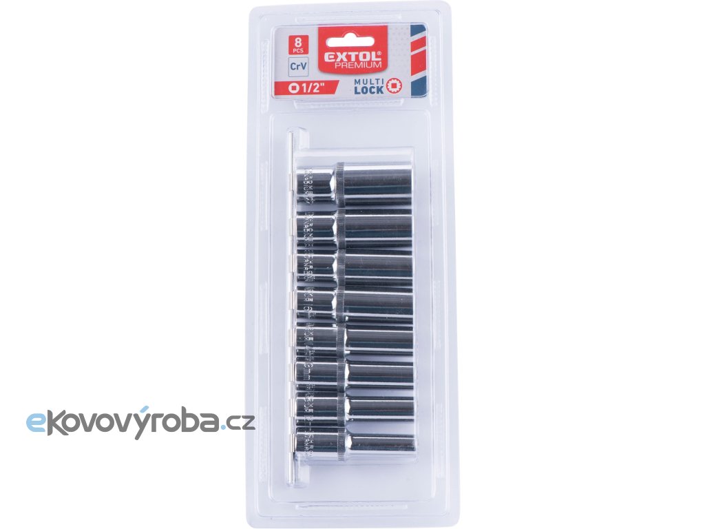 hlavice nástrčné prodloužené, MULTI-LOCK, sada 8ks, 1/2", CrV