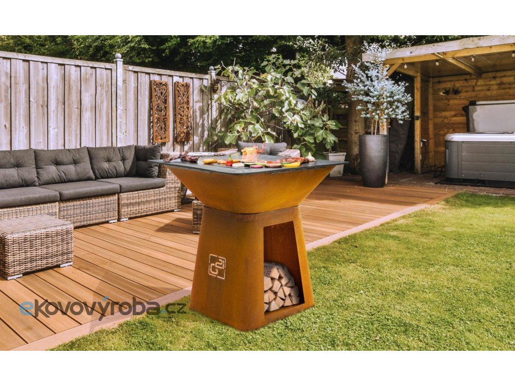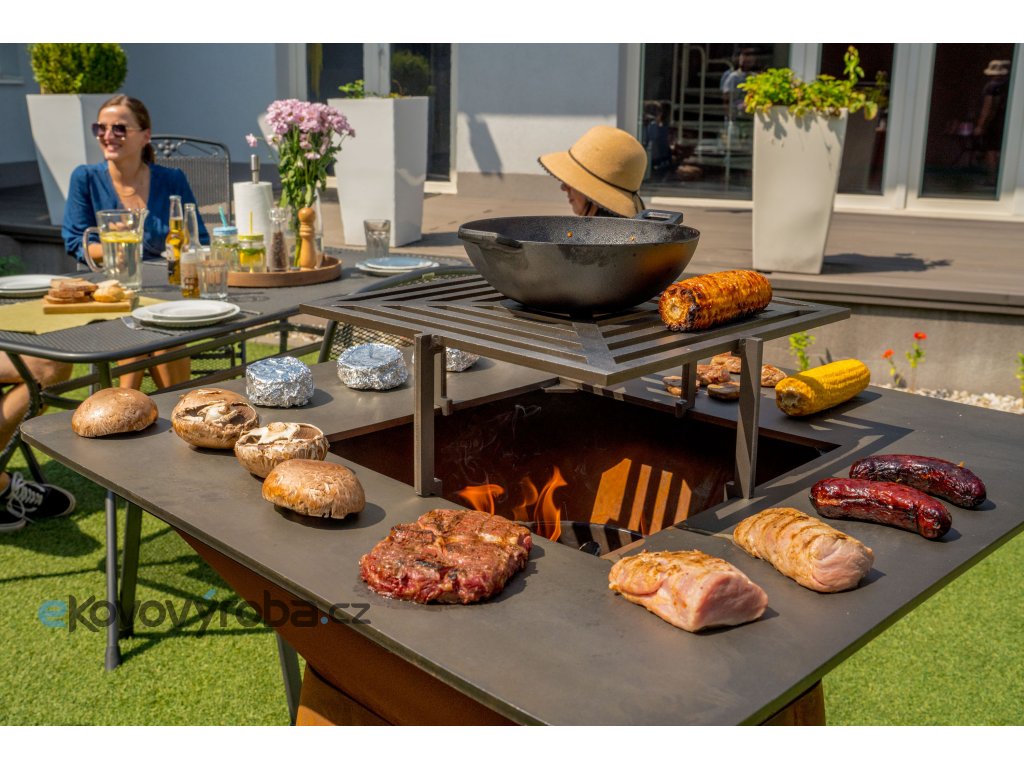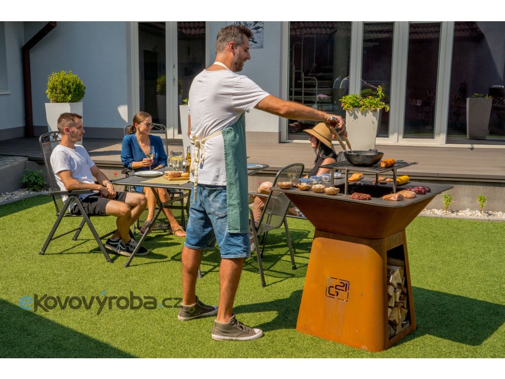- Široké využití – corten gril s planchou využijete i v komerčním provozu pro efektivní předvádění přípravy jídel