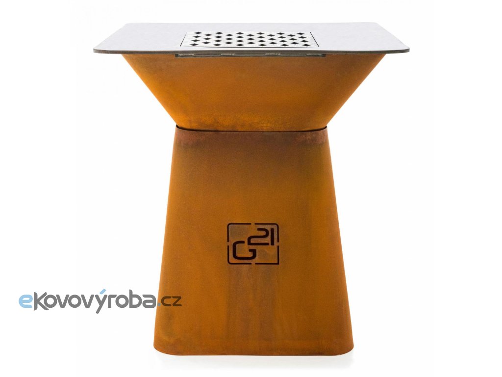 Až na nejvyšší úroveň grilování se dostanete s cortenovým grilem G21 Montana Corten. Gril se dvěma rošty, obrovskou grilovací plochou (planchou) o rozměru 85 x 85 cm, dvojitým pláštěm topeniště a krytým prostorem na ukládání připraveného dřeva pro grilování má speciální povrchovou úpravu – corten. Corten je celoživotně bezúdržbový a odolá každému počasí. Připravte se na mimořádné zážitky s tímto výjimečným a nesmírně atraktivním grilem, spojujícím eleganci, nadčasovost, trvanlivost a jedinečný styl s drsně krásným vzhledem.