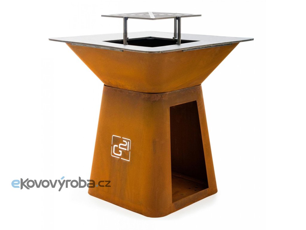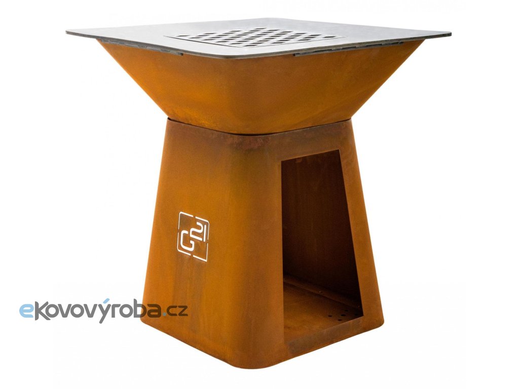 Cortenový gril G21 je konstrukčně řešený tak, aby grilování na něm bylo maximálně účelné. Ve spodní části grilu je krytý prostor pro ukládání dřevěných polen.
