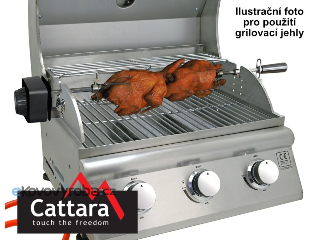 Konstrukce grilovacího prostoru je navržena tak, aby umožňovala snadné osazení grilovací jehlou s motorkem (např. Cattara 13053). Použití grilovací jehly zajistí pohodlnou připravu větších kusů mas, nebo kuřete s rovnoměrným otáčením.