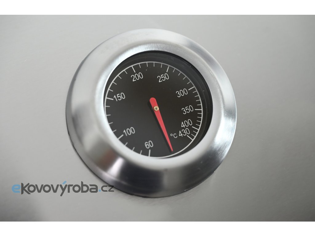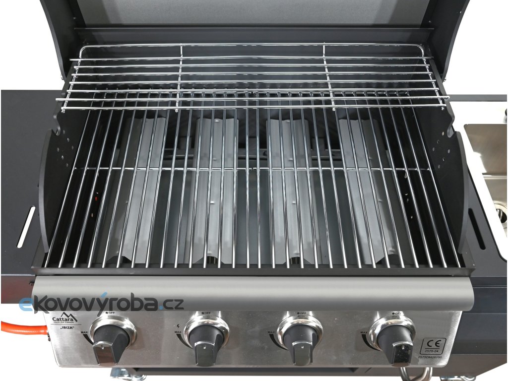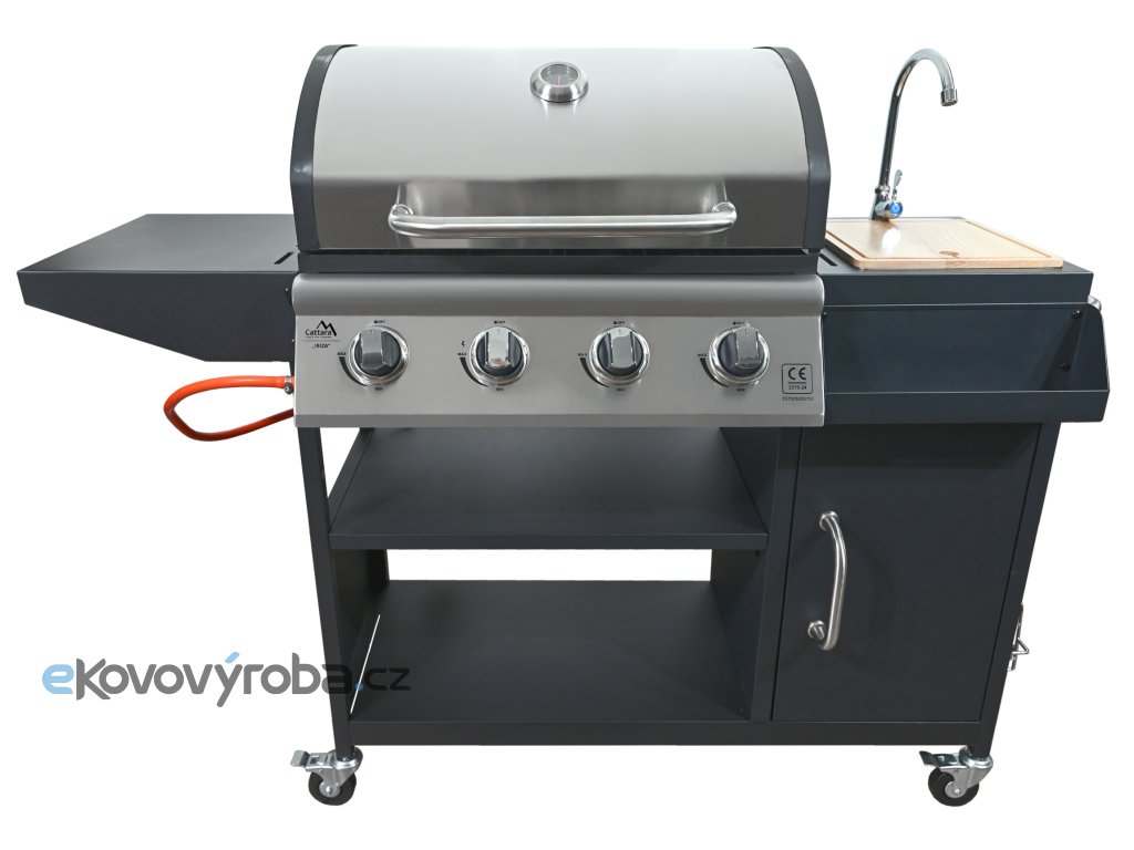 Hlavní grilovací prostor je osazen 4x hořáky se samostatnou regulací a piezo zapalováním. Díky možnosti vypnout prostřední hořáky je gril vhodný jak pro přímé, tak pro nepřímé grilování. Grilovací prostor je dále opatřen teploměrem a odkládacím roštem pro udržování teplot již hotových pokrmů. Součástí balení je i spojovací hadice k plynové lahvi a redukční ventil.