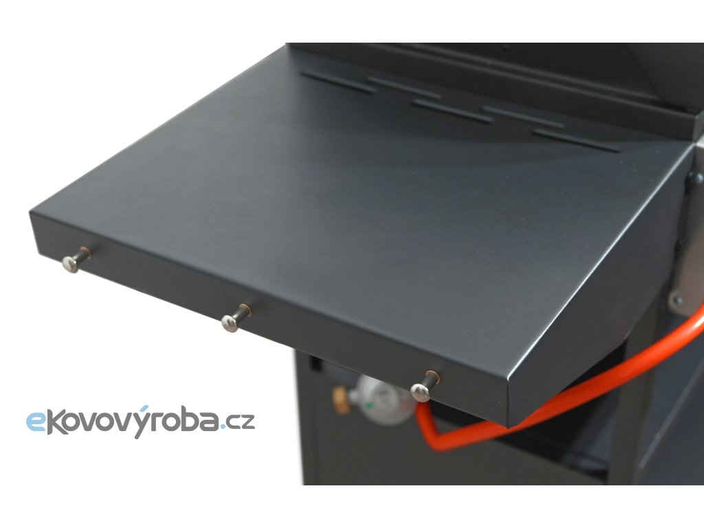 Grill je opatřen poličkou ve spodní části celé plochy grilu, určenou pro odkapávající tuk. Polička se vysouvá v zadní časti, tím je docíleno snadného čištění grilu.