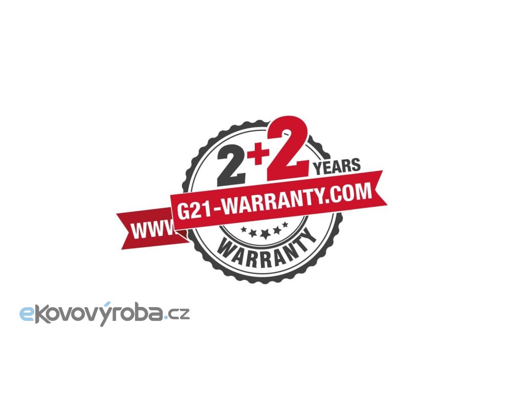 Za kvalitu tohoto produktu ručíme 4 roky*. Ke standardní záruční lhůtě 2 roky získáte registrací na webu http://g21-warranty.com prodloužení záruky o další 2 roky. Využijte tuto možnost a po koupi se zdarma zaregistrujte. Prodloužená záruka 2 + 2 roky se vyplatí!