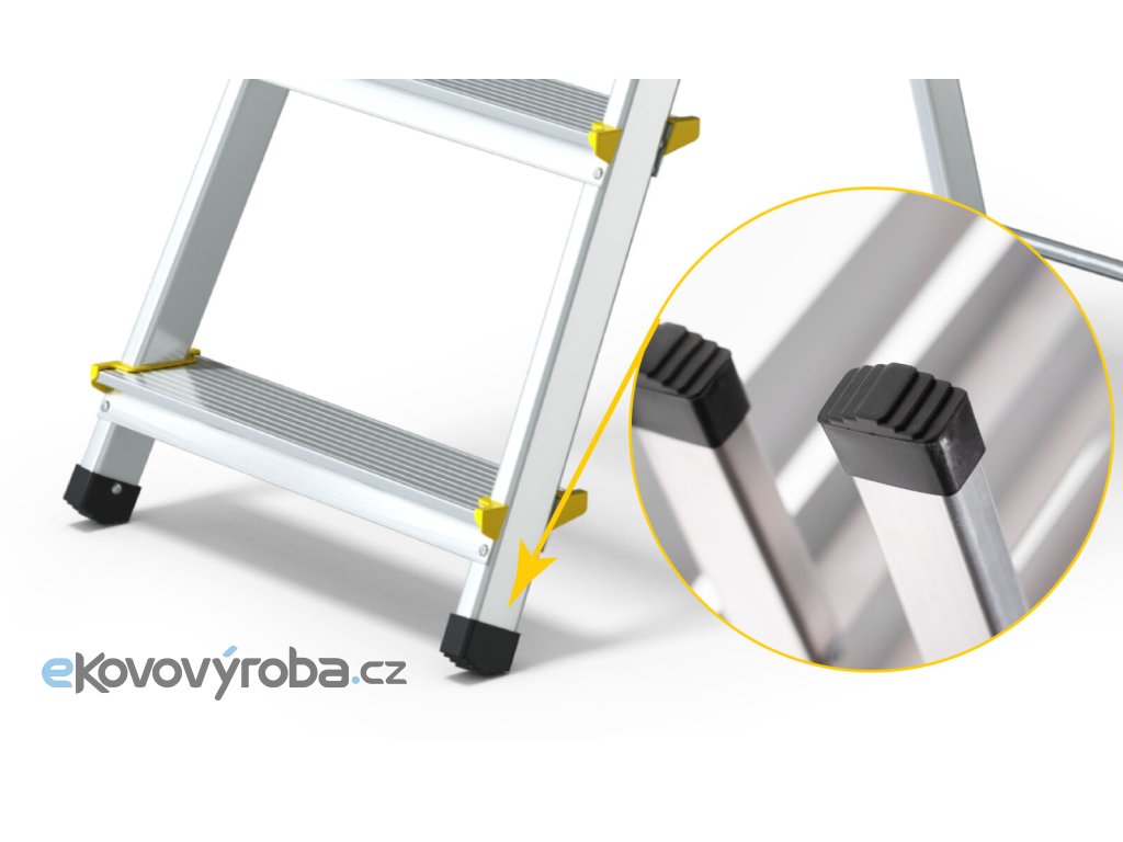 Protiskluzové nášlapy a pevné plastové zakončení nožek navíc zajišťují, že žebřík pevně drží i na hladkém nebo nerovném povrchu.
