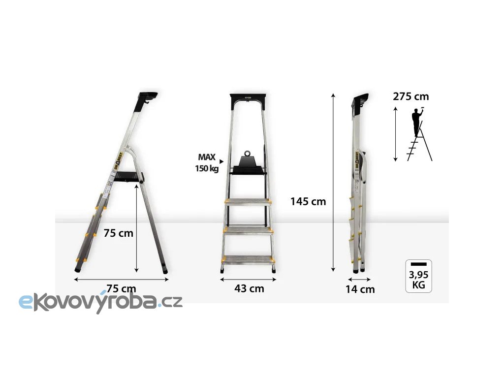 Hliníkové schůdky, 4 stupně, 2,75 m, max. zátěž 150 kg