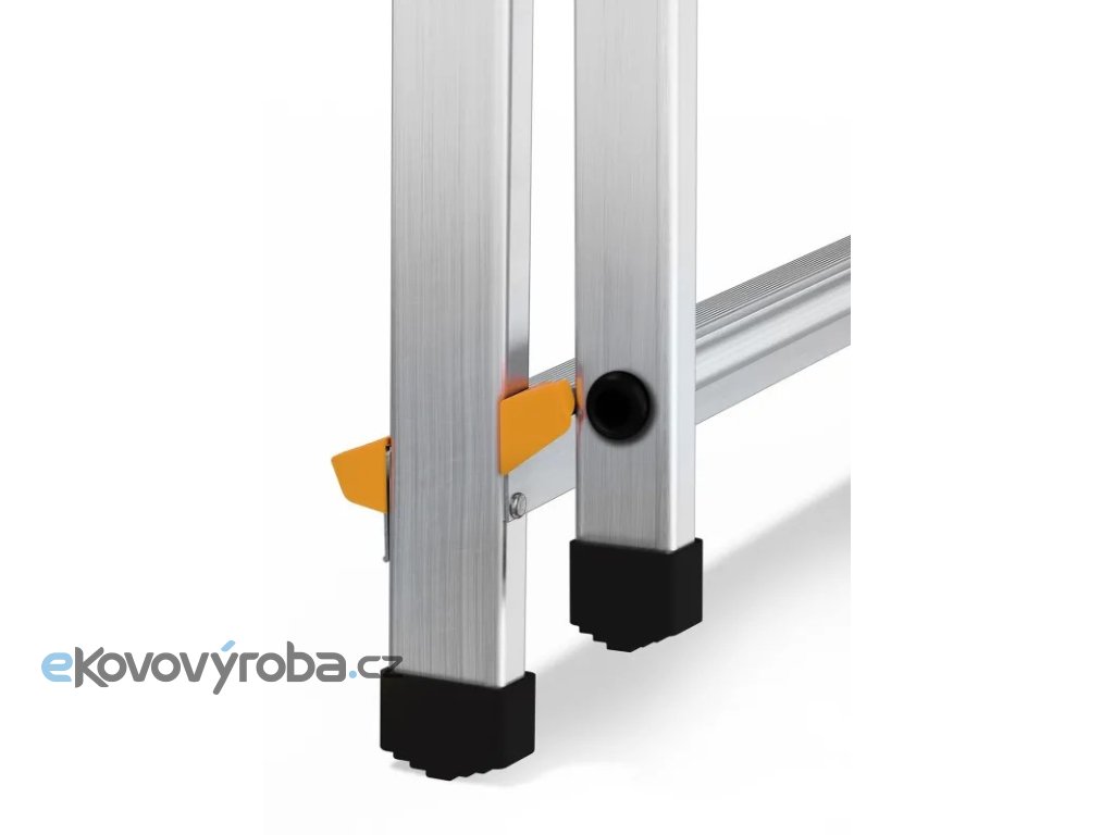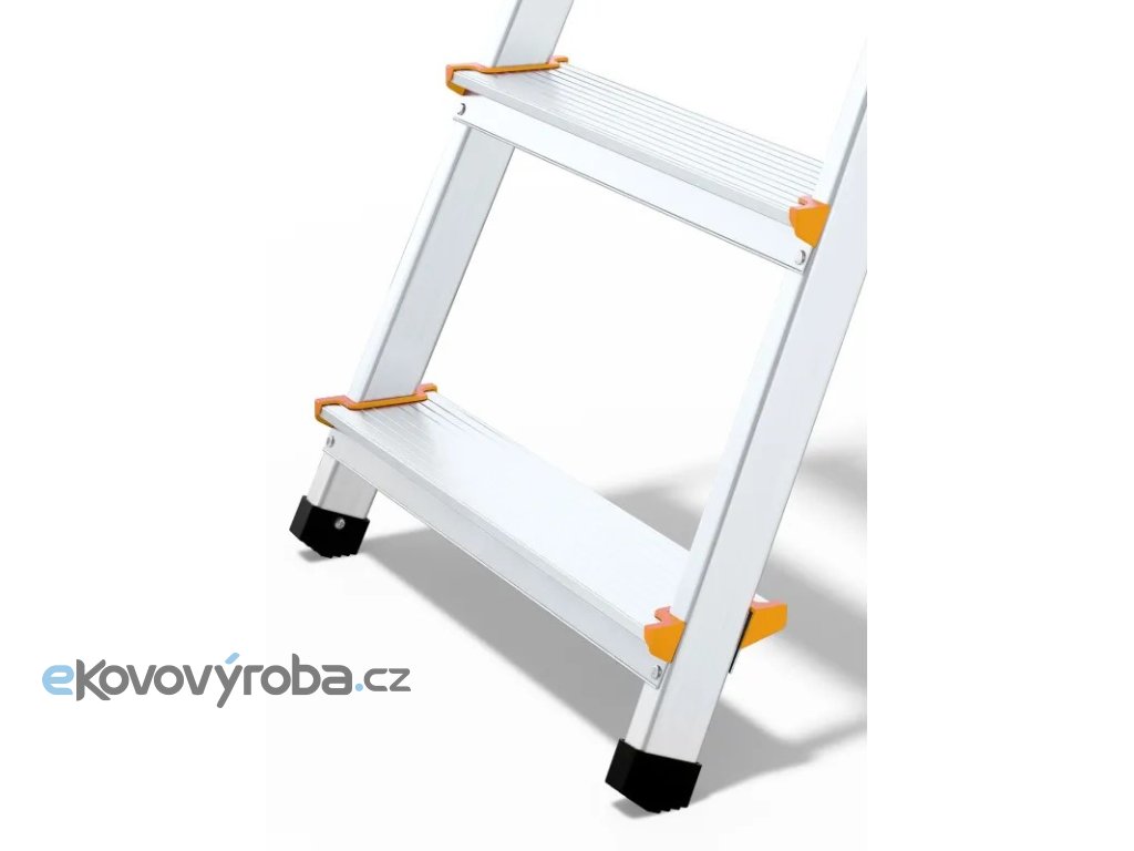 Protiskluzové nožičky a vroubkované schůdky udržují žebřík stabilní i na kluzkém nebo nerovném povrchu.