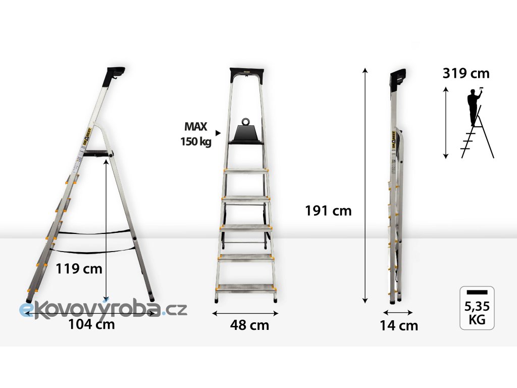 Hliníkové schůdky, 6 stupňů, 3,19m, max. zátěž 150 kg