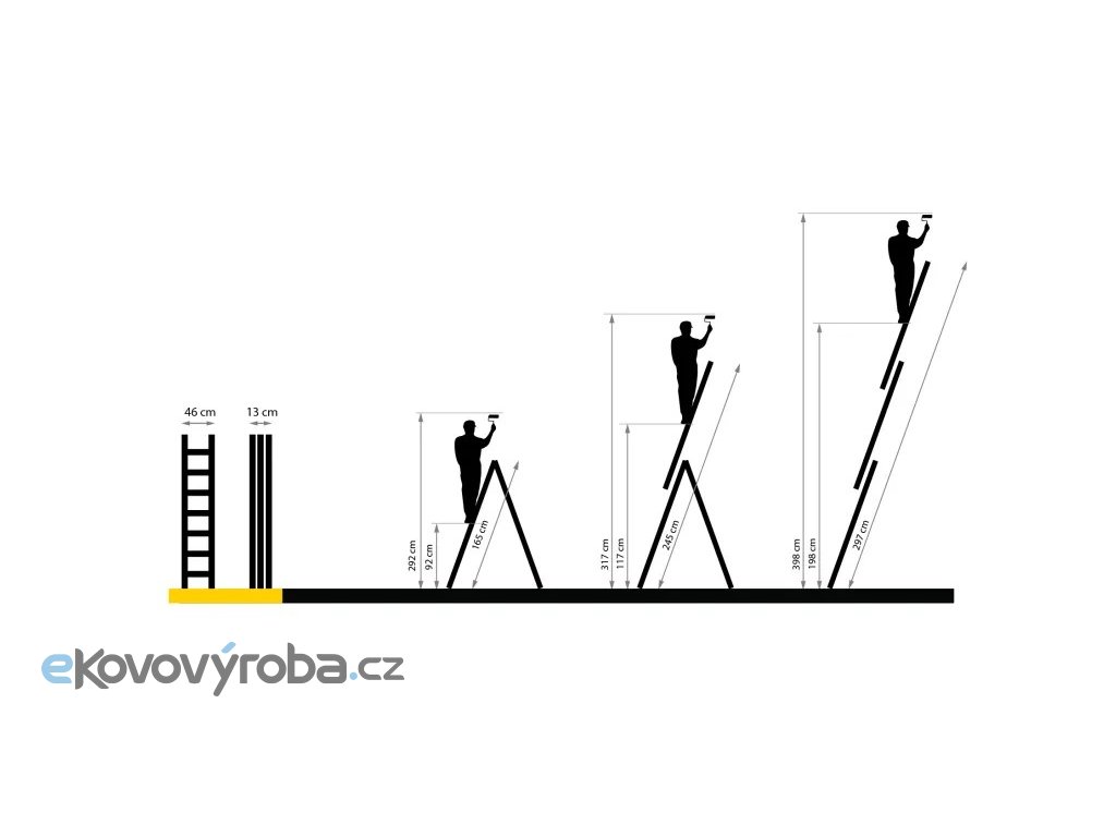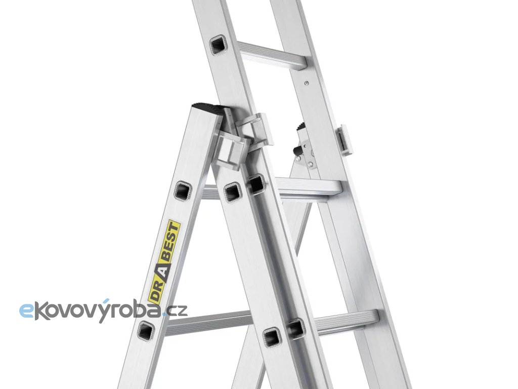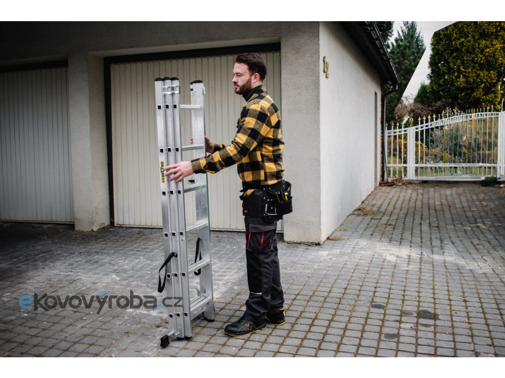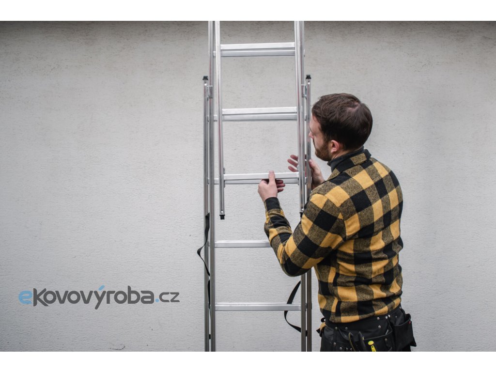 - Multifunkční provedení 3v1 – lze používat opřený, samostatně stojící nebo jako výsuvný žebřík