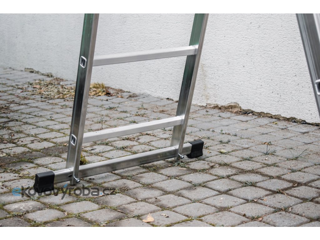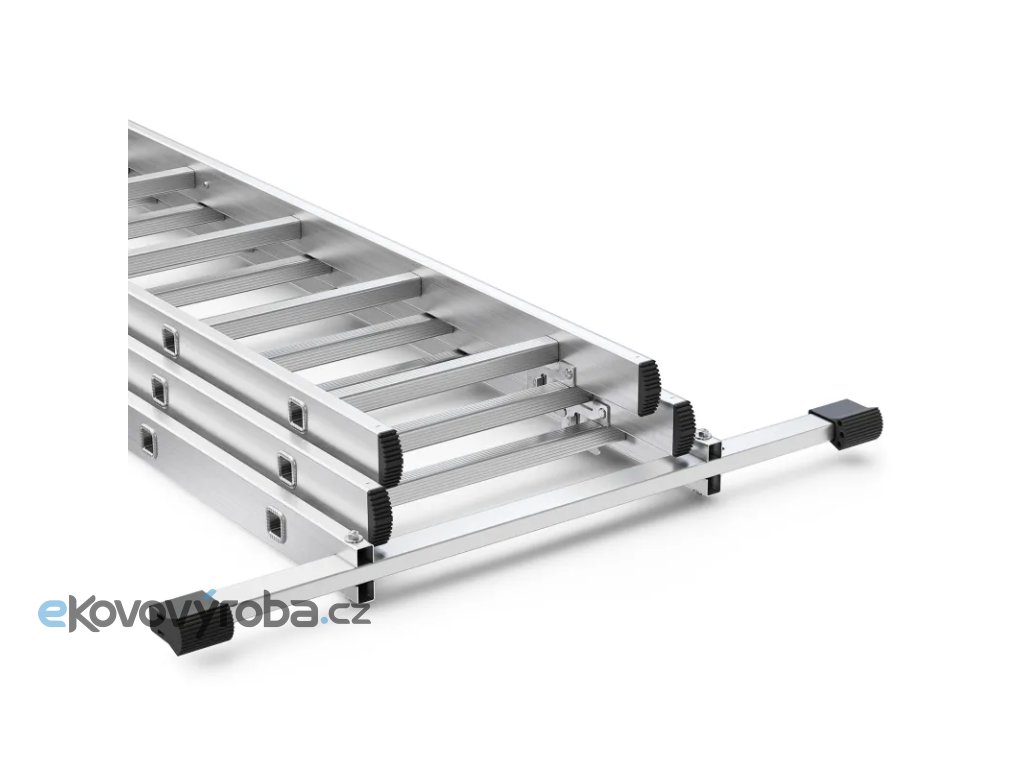 Stabilizační lišta o délce 675 mm s protiskluzovými zakončeními zajišťuje, že se žebřík nehýbe ani na nerovném povrchu.