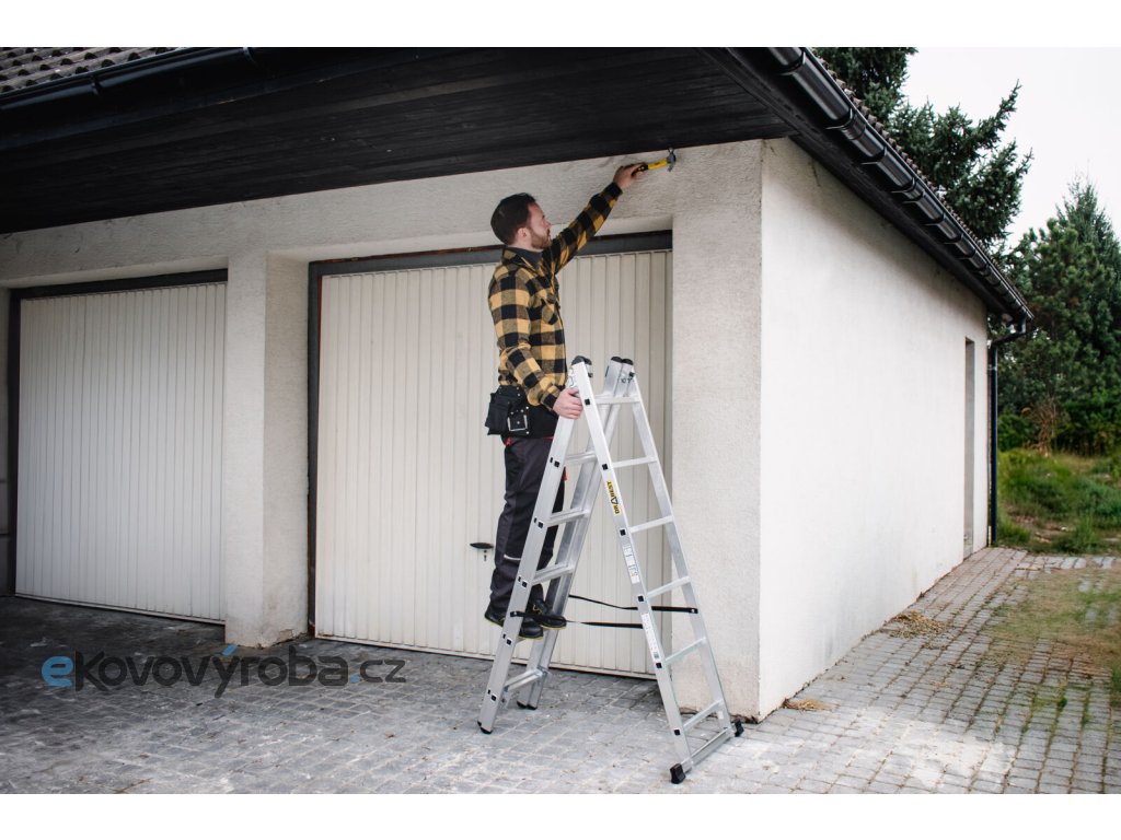 Je možné jej používat ve více polohách – jako klasický opěrný žebřík, volně stojící variantu nebo dokonce přizpůsobit pro práci na schodišti.