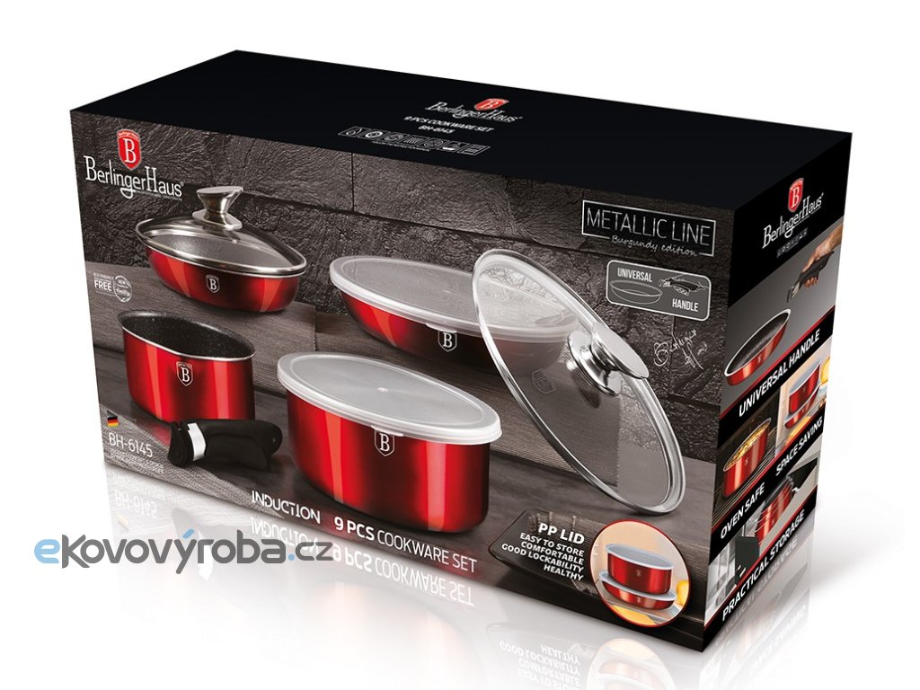Sada nádobí Berlingerhaus s odnímatelnou rukojetí 9 ks Burgundy Metallic Line