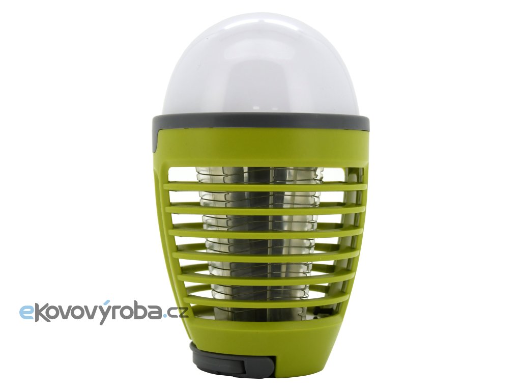 Lampička s elektronickým lapačem hmyzu, který využívá světlo s ultra fialovými paprsky pro efektivní nalákání létavého hmyzu (např. mouchy, můry, moly, komáry a další). Hmyz je po kontaktu s kovovou sítí pod vysokým napětím zahuben elektrickým proudem. Přístroj k hubení nevyužívá žádných chemických látek, pracuje bez zápachu a bez znečištění.