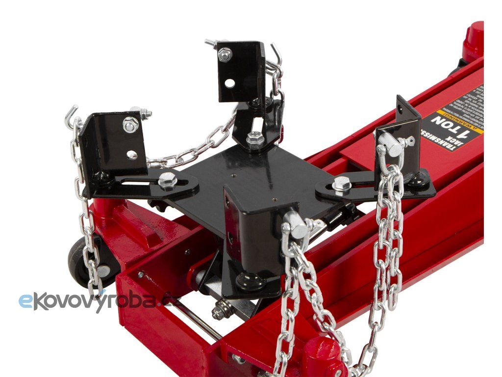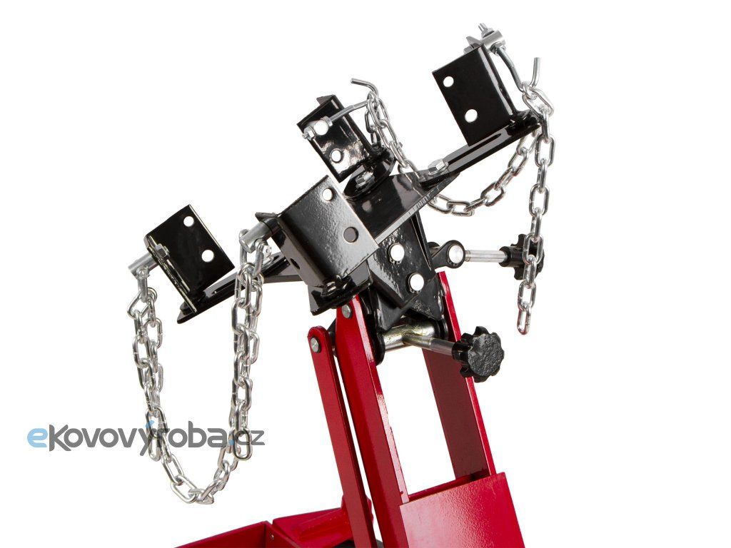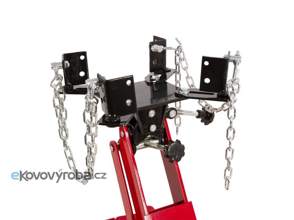 Zvedák je opatřen nastavitelnou nosnou plochou s řetězy.