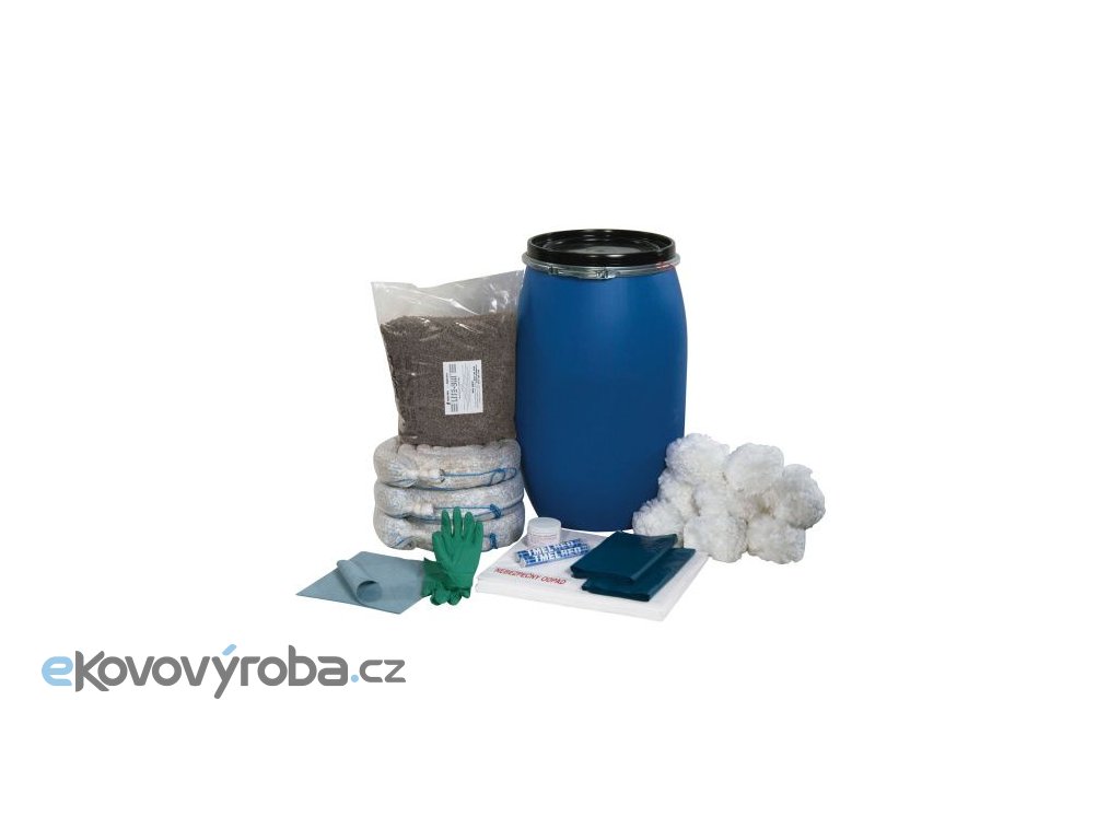 souprava hydrofobních sorpčních prostředků, těsnících materiálů a základních ochranných pomůcek pro likvidaci havárií ropných kapalin uložená v chemicky odolném sudu s UN atestem. Doporučené použití Základní přenosné vybavení mechanizačních a dopravních prostředků, dílen, čerpacích stanic, skladů olejů a provozů sloužící pro likvidaci havárií ropných látek.