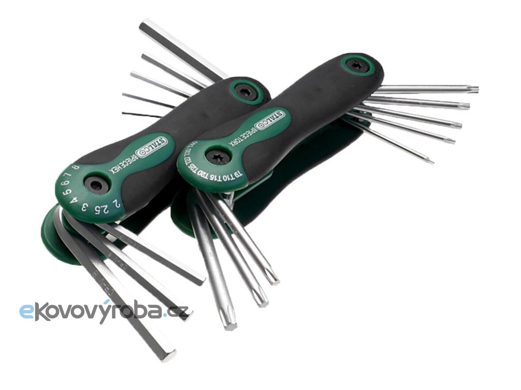Sada klíčů Torx a imbusových klíčů Torx: T9 - T40 ; Hex: 2-8 mm ; 2 x 8-dílná sada.