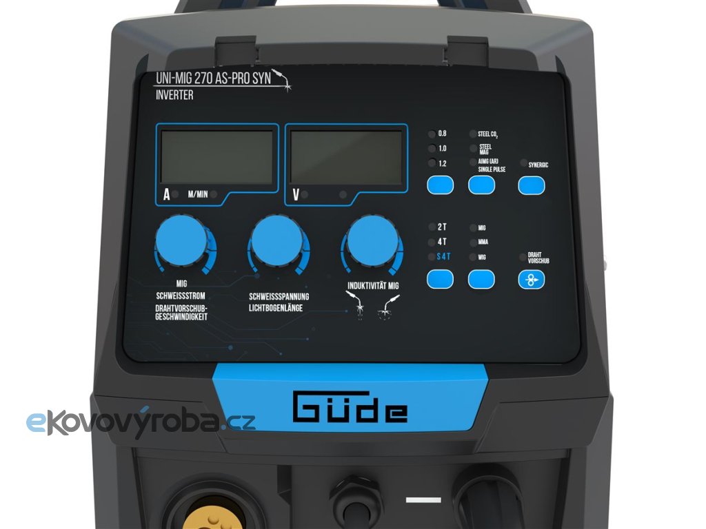 Profesionální invertorová svářečka Güde, určená pro obloukové svařování metodami MMA, FCAW, MIG/MAG a WIG.