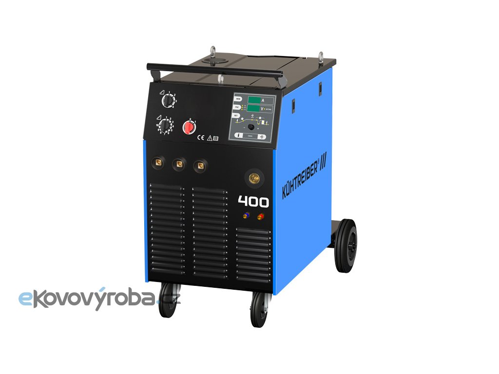 KIT 400 W je profesionální svařovací stroj vybavený výkonným transformátorem s měděným primárním a sekundárním vinutím, robustním posuvem drátu s výkonným motorem, EURO konektorem a řídící elektronikou. Hlavní přednosti strojů KIT jsou vynikající svařovací vlastnosti, 40 stupňová regulace napětí, vysoký výkon, vysoké zatěžovatele, spolehlivost a jednoduché ovládání. Stroje jsou určeny do provozů, kde jsou kladeny ty nejvyšší nároky na výkon, spolehlivost a jednoduchost ovládání. VYBAVENÍ Digitální voltampérmetr 4 kladkový posuv drátu (kladky pro drát 1,0 - 1,2 mm) 2 takt / 4 takt Burn Back Easy Use Předfuk / dofuk plynu Spot Puls Feed Back Generátor Up-Down Soft Start Test Gas Okruh pro kapalinové chlazení svařovacího hořáku