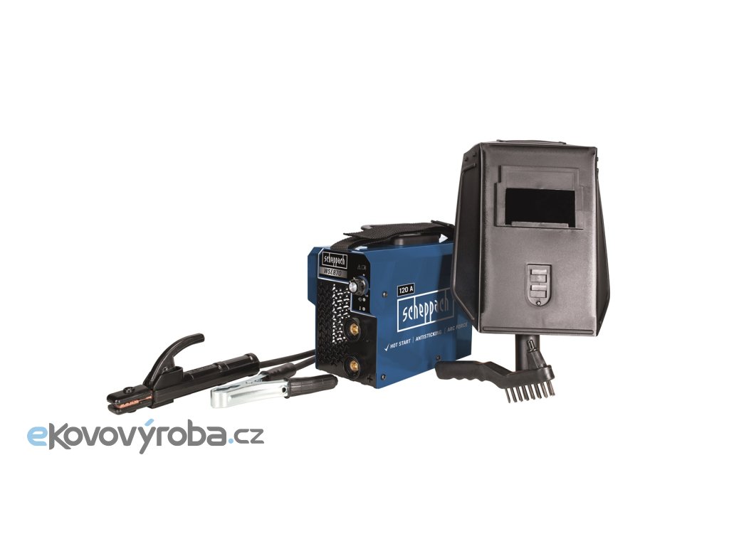 Svářecí invertor Scheppach WSE 870 je kompaktní, lehká a snadno ovladatelná svářečka, která se hodí pro svářecí práce v garážích, dílnách okolo domu, chalupy apod. Dodává se v praktickém setu, ve kterém naleznete vše potřebné k tomu, abyste mohli ihned začít svařovat – kabel se zemnícími kleštěmi, kabel s držákem elektrod, ochranný štít, kladívko na strusku s drátěným kartáčem, 3x svářecí elektrodu, popruh na rameno a výklopné madlo pro snadné přenášení. Stroj je vybaven účinným chlazením a ochranou proti přehřátí a rovněž ochranou proti přetížení se světelnou indikací. Svařovací proud lze nastavit postupně otočným ovladačem v rozmezí 10 až 120 A. Stroj byl se skvělými výsledky testován českými profesionálními svářeči a odbornými prodejci svářecí techniky. Díky vybavení nejmodernějšími technologiemi, které ulehčují svařování, se hodí nejenom pro zručné svářeče, ale i pro naprosté začátečníky.
