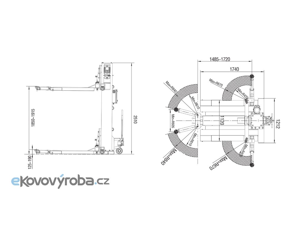 | Šířka zvedáku při pojíždění | < 1800 mm |