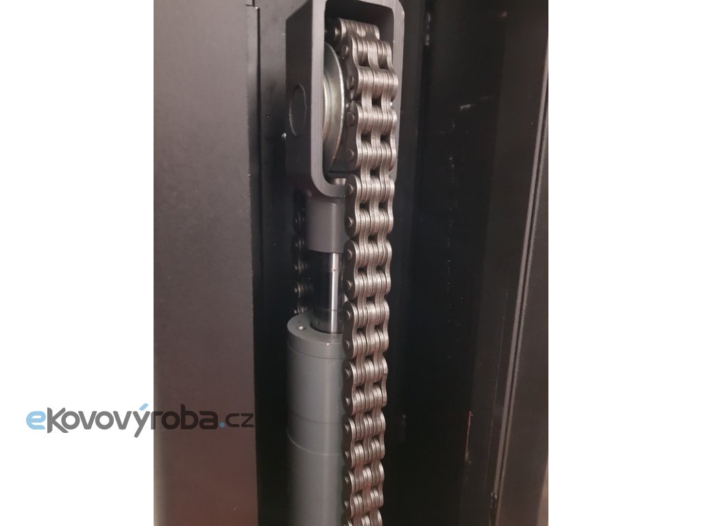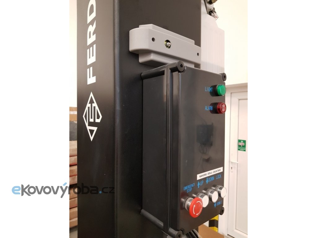 Kromě mechanických západek je hydraulický okruh jištěn průtokovým ventilem, který se při rychlém spouštění zablokuje. Pro bezpečnost obsluhy se při dojíždění do spodní polohy spustí akustická signalizace. Ve vrchní poloze je koncový vypínač.