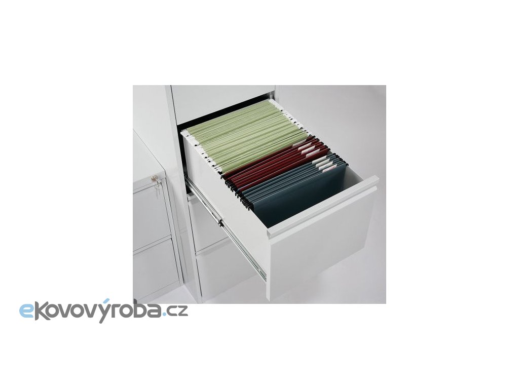 Vyrobeno z kvalitního ocelového plechu. Povrchová úprava provedena práškovou barvou. Zásuvky jsou opatřeny kuličkovým vedením se 100% výsuvem. Možnost přístupu k dokumentům v celé hloubce zásuvky. Uzamykání pomocí centrálního zámku. Vybaveno blokací proti vysunutí více jak jedné zásuvky najednou. Uzpůsobeno pro použití závěsných kapes, které umožňují bezpečné a přehledné ukládání dokumentů.