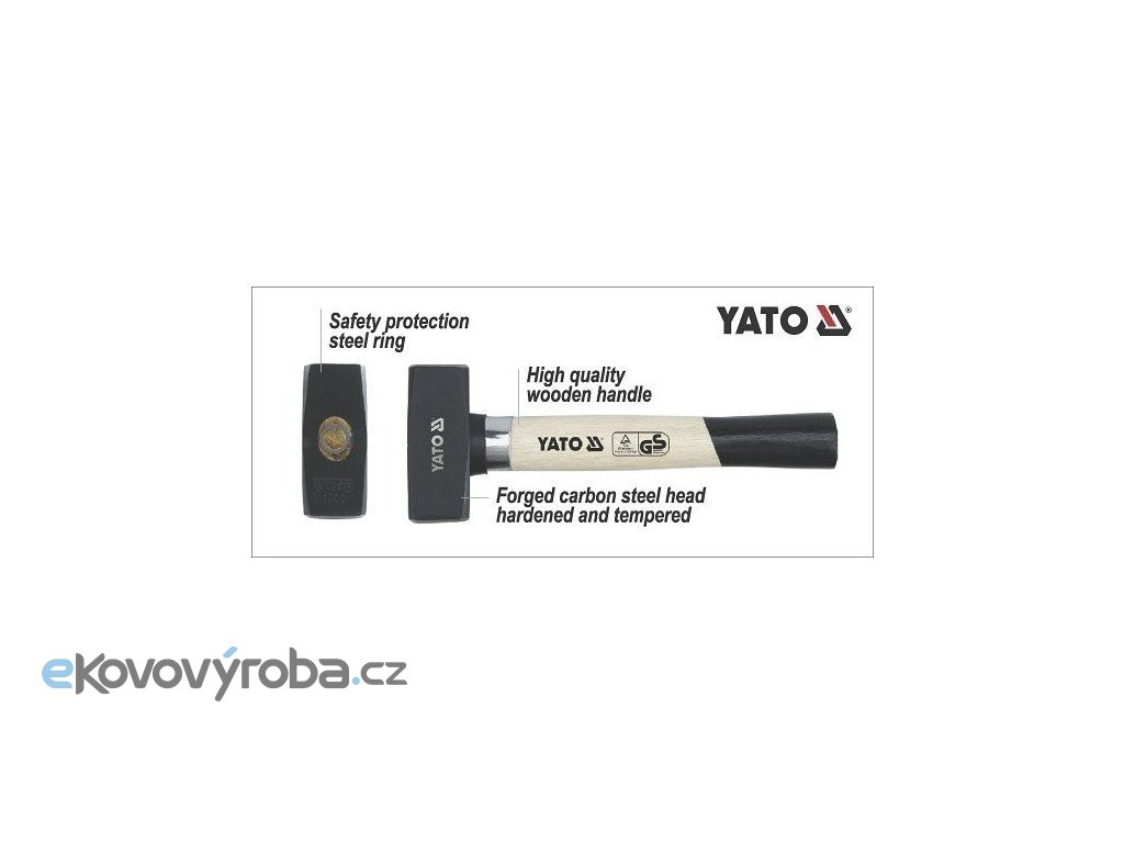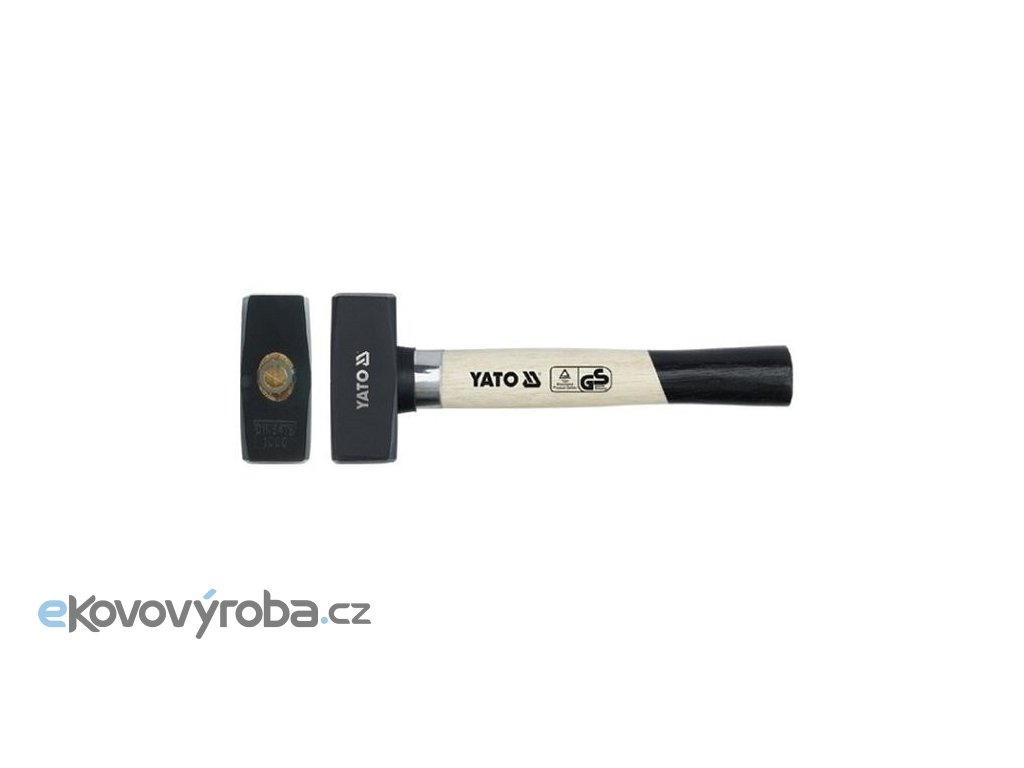 Kvalitní kovová palička Yato o hmotnosti 2000 gramů s dřevěnou násadou .