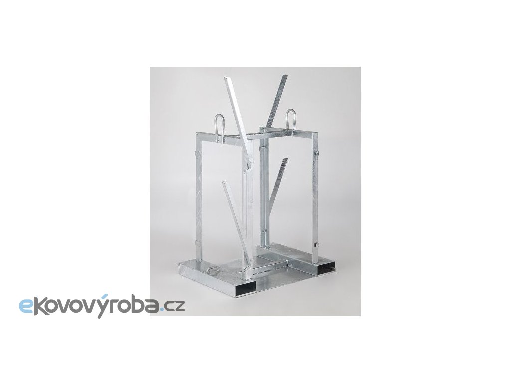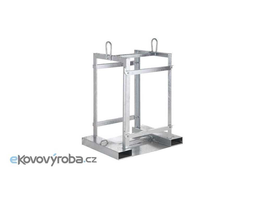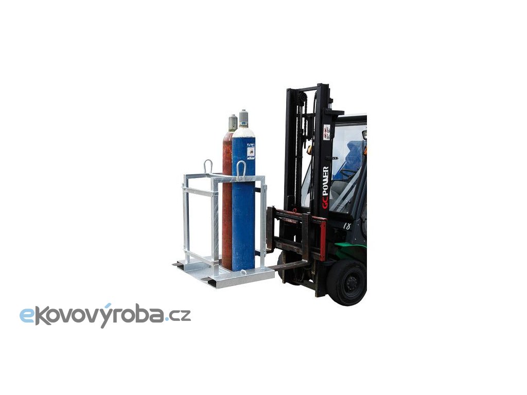 Ocelová převozní paleta pro čtyři plynové lahve. Vyrobeno z pevného ocelového plechu, tyčí a profilů. Slouží k bezpečné přepravě 4 lahví do průměru 250 mm. Paleta je výztuhami rozdělena na dvě části (buňky pro uložení lahví). Povrchová úprava je provedena žárovým zinkováním. Disponuje vysokou odolností proti povětrnostním vlivům. Vybaveno oky pro zabezpečení (fixaci). Dodáváno s řetězem a dvěma karabinami pro zajištění palety při přepravě. Přeprava je prováděna pomocí VZV techniky z obou stran.