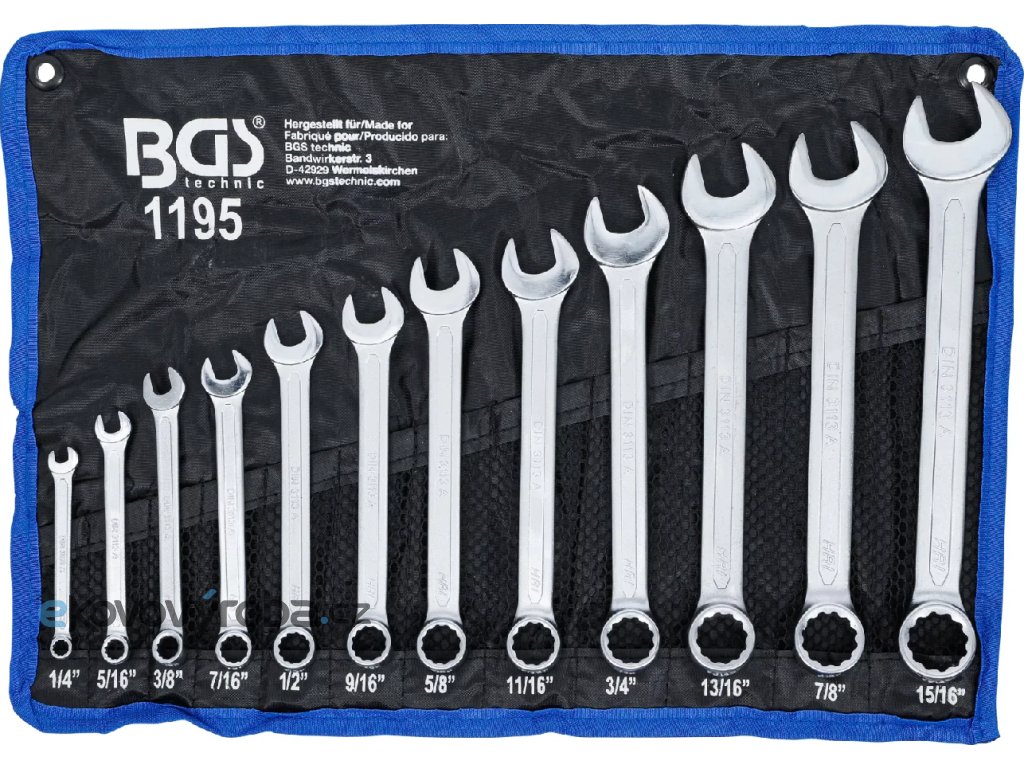V sadě naleznete klíče o velikostech: 1/4“ - 5/16“ - 3/8“ - 7/16“ - 1/2“ - 9/16“ - 5/8“ - 11/16“ - 3/4“ - 13/16“ - 7/8“ a 15/16“.