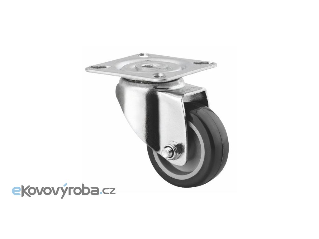 Vyrobeno z ocelového pozinkovaného výlisku – vidlice. Kolečko vyrobeno z polyuretanu s polypropylenovým středem. Zpevněná ocelová vidlice v zinkované povrchové úpravě. Široké uplatnění kol u velké škály přístrojů, u kterých je zapotřebí zajistit mobilitu (pouze hladké a pevné povrchy). V souladu s normou EN 12530 – Kladky a kola pro ručně poháněné institucionální zařízení. - Plastové kolo s gumovou obručí. - Vidlice kolečka je povrchově upravena zinkováním. - Nejčastější použití u přístrojů a strojních zařízení. 100 mm 25 mm 70 kg 125 mm 61,5x56/51,5/46,5 mm 77x67 mm 8,5 mm PROVEDENÍ bez brzdy