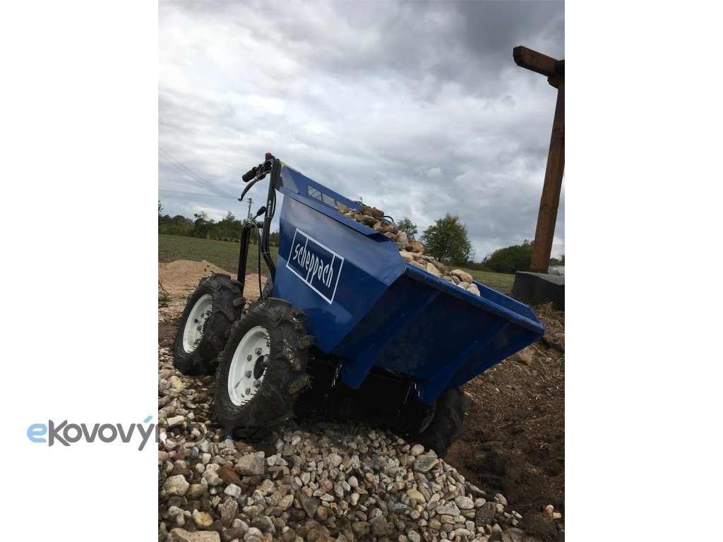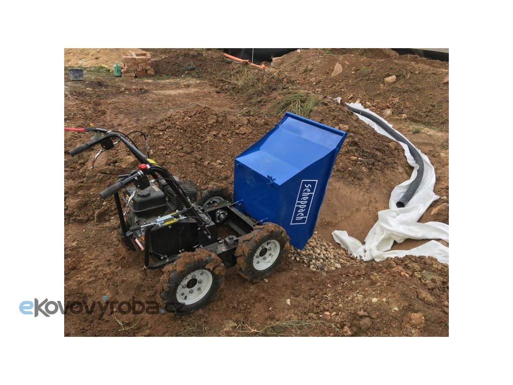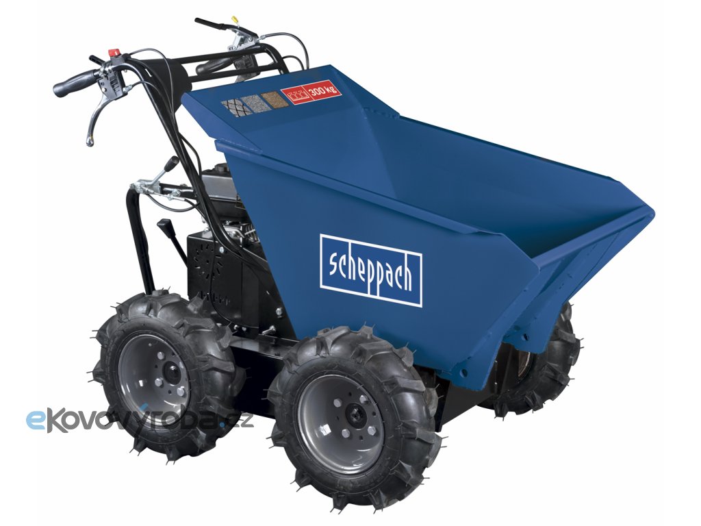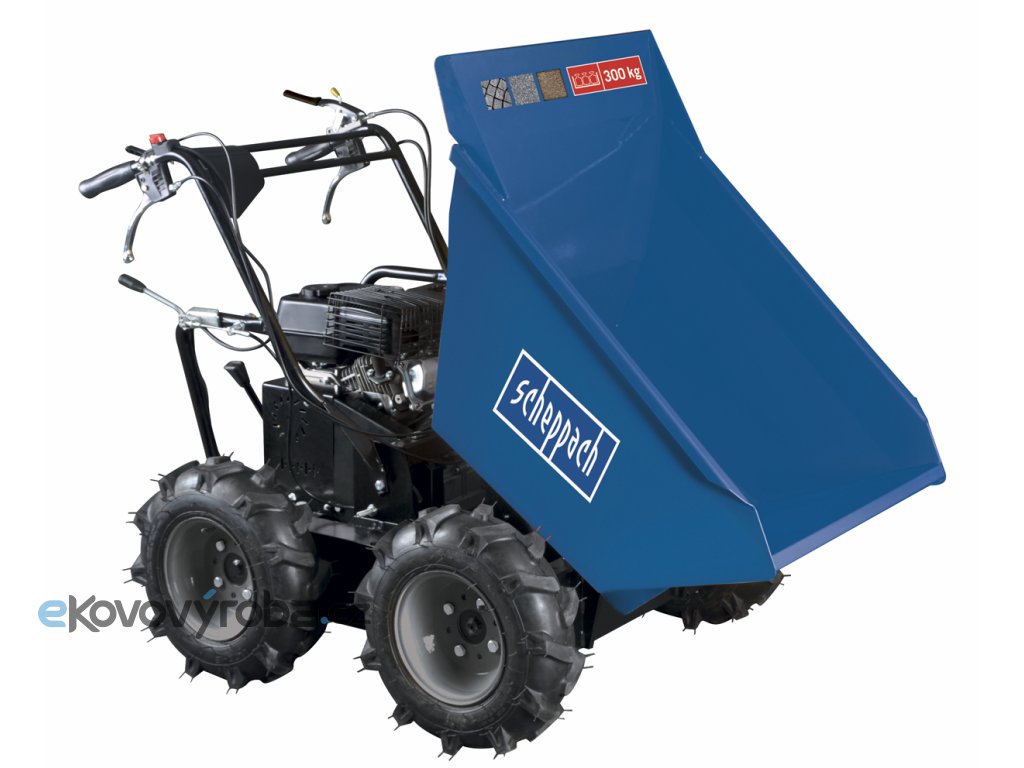 Kolový přepravník Scheppach DP 3000 Vám umožní velmi pohodlnou přepravu až 300 kg sypkých i pevných materiálů i na velmi špatně přístupných místech. Skvěle se hodí na přepravu zeminy, písku, štěrku, kamenů, dlažby, cihel, ale třeba i dřeva nebo trávy. Hojně se využívá na staveništích, při demolicích či rekonstrukcích objektů, při výkopových pracích, v zemědělství, zahradnictví, lesnictví ap. Výhodou je nejenom větší bezpečnost a průchodnost i v těžším terénu, ale i výrazně vyšší produktivita práce oproti běžným manuálním přepravním prostředkům. Pohon všech čtyř kol zaručuje skvělou průchodnost i velkou svahovou dostupnost, přičemž velká a široká kola přispívají ke snadné ovladatelnosti a ochraně podkladu. Obsluha všech ovládacích prvků je velmi jednoduchá. Páčkami na rukojeti snadno řídíte otáčení, brzda se aktivuje automaticky při uvolnění páky spojky a rovněž páka řazení třístupňové převodovky je ve snadném dosahu obsluhy. Pro pohon je použit velmi oblíbený motor Loncin s vysokým výkonem 5,6 HP, který patří k nejoblíbenějším a nejspolehlivějším pohonným jednotkám vůbec. Stroj lze dovybavit sněhovou radlicí o rozměrech 100 x 50 cm.Podmínky prodloužené záruky naleznete zde.Případné bezpečnostní pokyny, výstrahy a upozornění jsou součástí návodu k obsluze, který je k dispozici v sekci KE STAŽENÍ.
