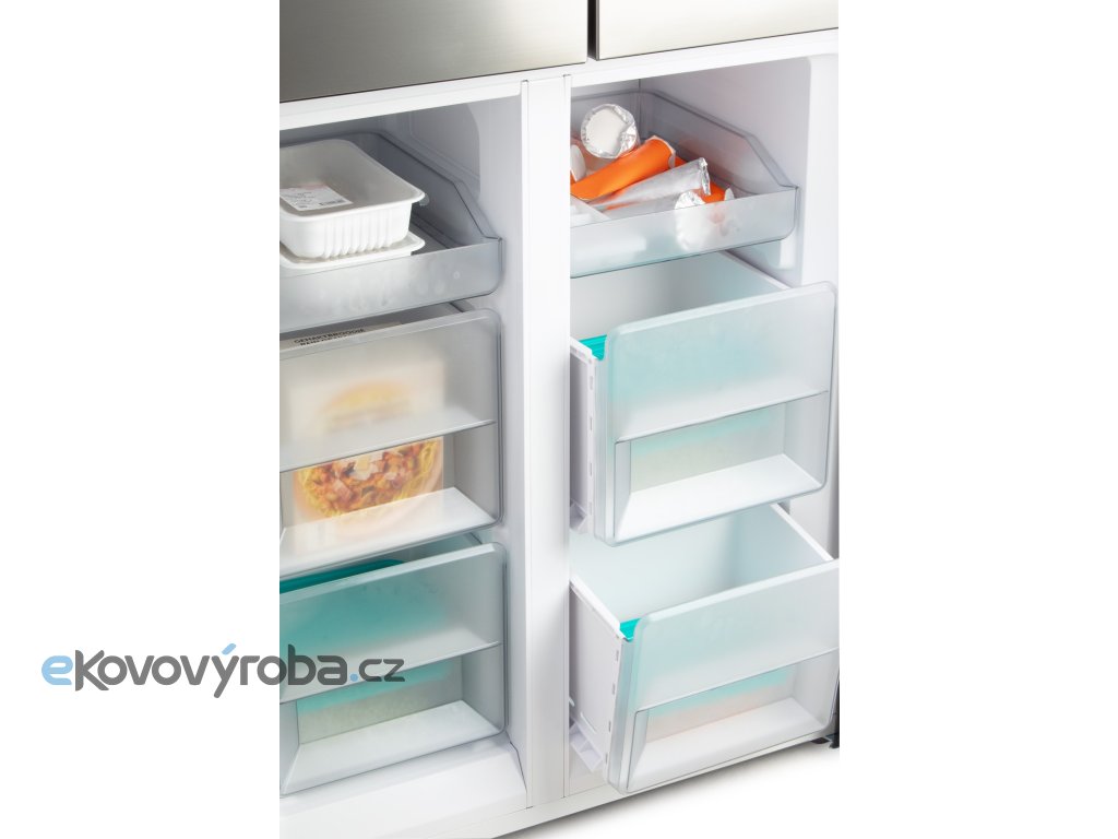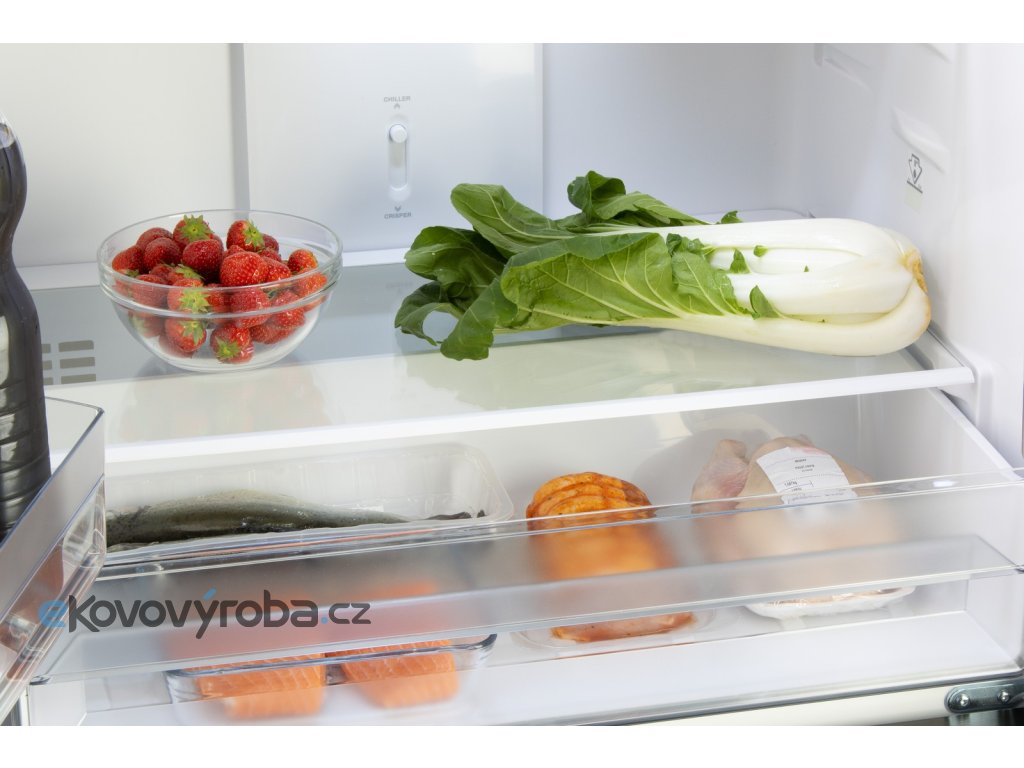 Každý větší šéfkuchař ocení vnitřní prostor lednice bez středového sloupku a tím dosažení extra velkého prostoru pro chlazení i velkých kusů potravin (dorty, šunka kosti atd...). Nesmíme zapomenou zmínit i propracovaný "fresh box" na zeleninu, kde si sami můžete regulovat úroveň vlhkosti a tím zajistit co nejdelší čerstvost potravin.