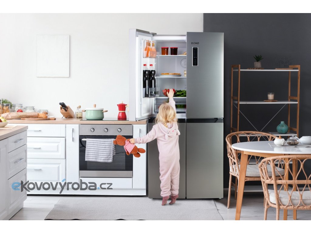 Čtyřdvéřová lednice s mrazákem dole - DOMO DO99504M, Objem chladničky: 237 l, Objem mrazáku: 125 l, Třída: D