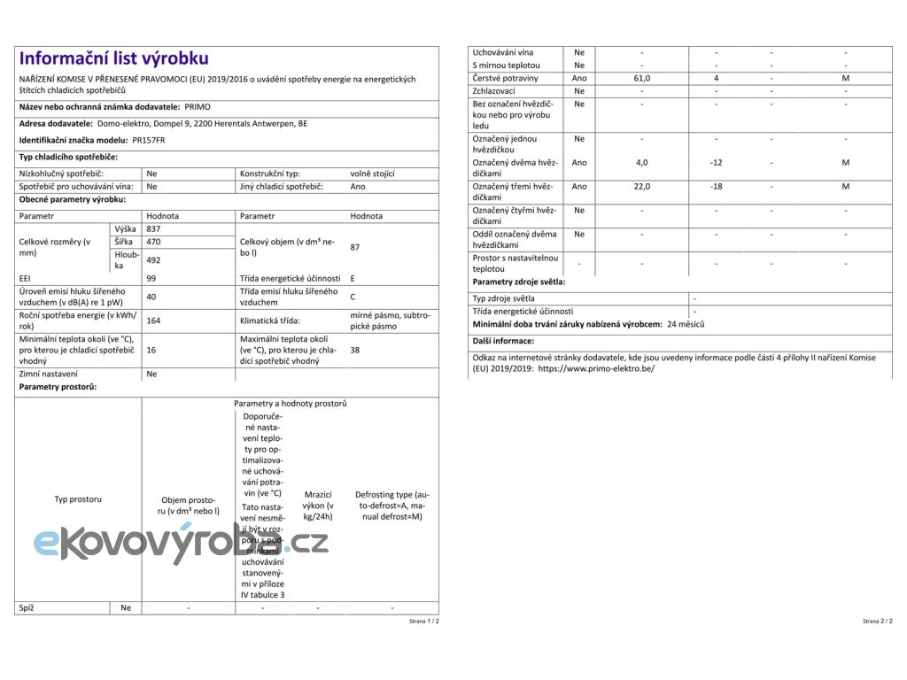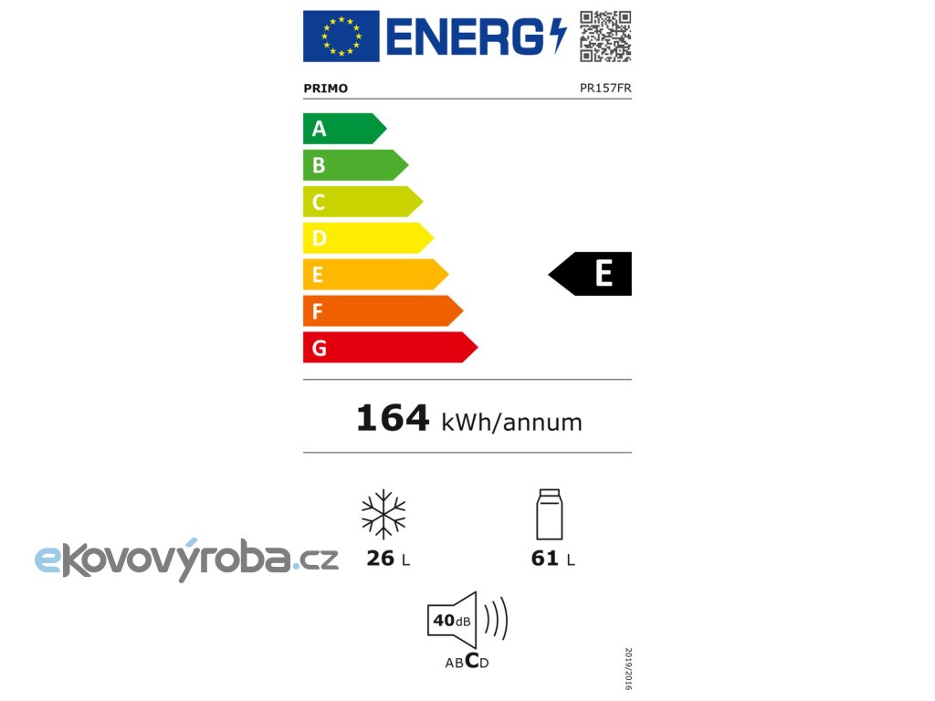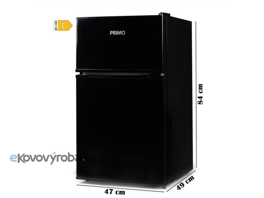 Lednice s mrazákem nahoře - černá - Primo PR157FR, Objem chladničky: 61 l *, Objem mrazáku: 26 l *, Třída: E