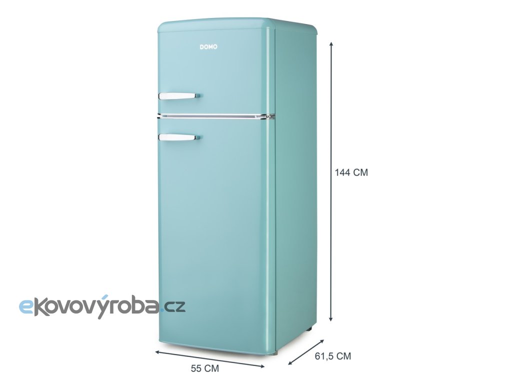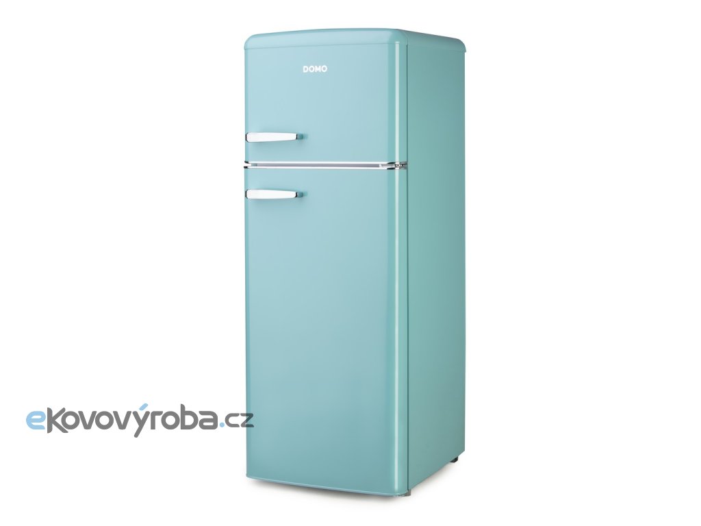 Retro lednice s mrazákem nahoře - tyrkysová - DOMO DO91705R, Objem chladničky: 162 l *, Objem mrazáku: 44 l *, Třída: D