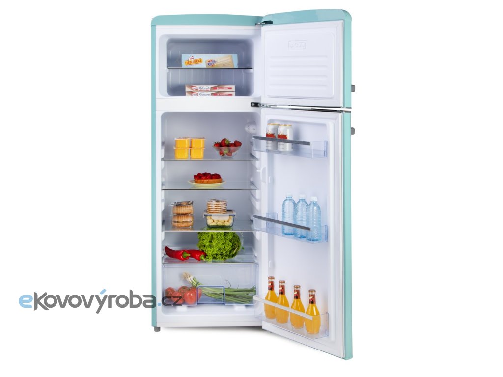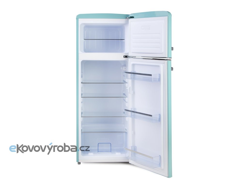 - Provedení lednice: retro kombinovaná s mrazákem nahoře