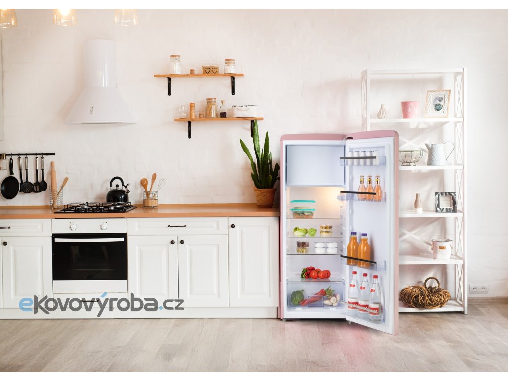 - Provedení lednice: jednodvéřová retro