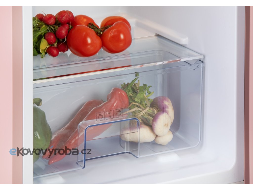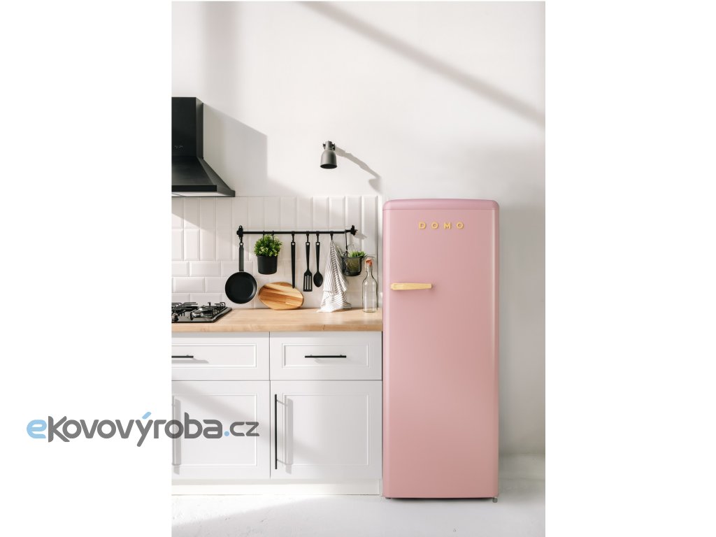 Retro lednice s mrazákem uvnitř - růžová - DOMO DO91708R, Objem chladničky: 194 l *, Objem mrazáku: 24 l *, Třída: D