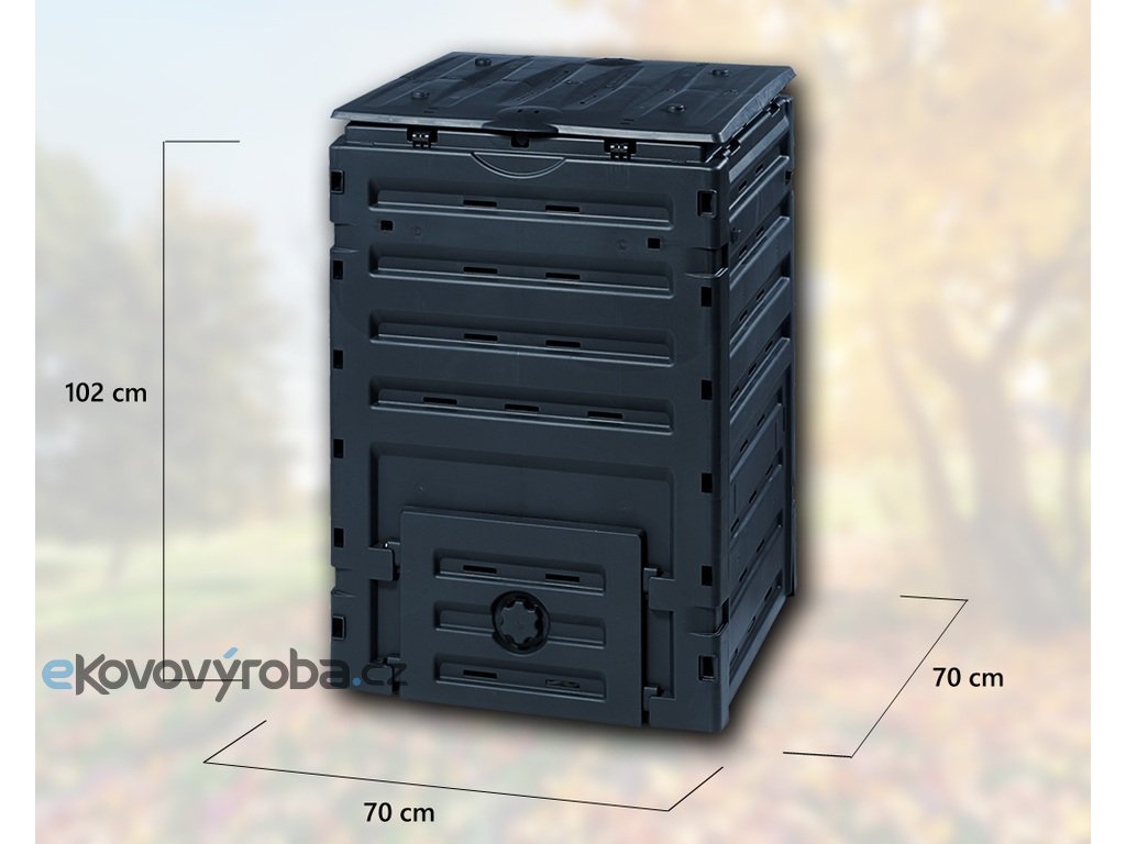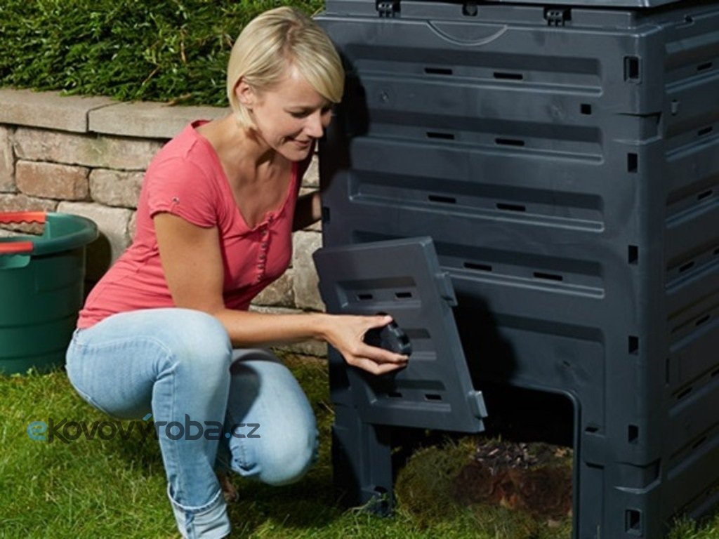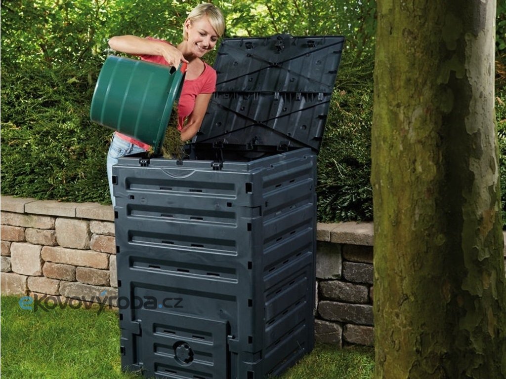 Kompostéry ECOMASTER rychle přeměňují odpad na kompost díky optimalizovanému větracímu systému. Snadno se plní velkým vhozovým otvorem s větrnou pojistkou a snadné je rovněž odebírání hotového kompostu.