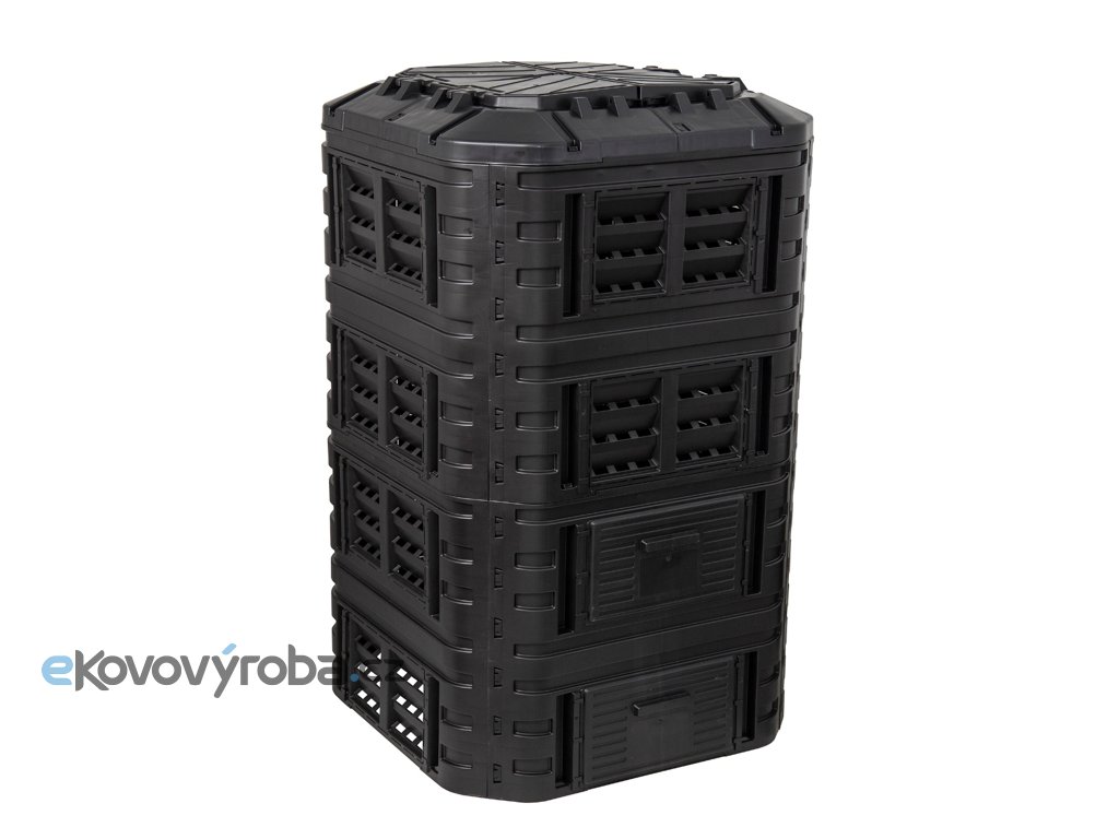 Plastový kompostér o objemu 1260 L z velmi pevného polypropylenu. Konstrukce zajišťuje cirkulaci vzduchu a urychluje rozkladný proces. Součástí výrobku je víko i boční dvířka pro snadné vyjímání kompostu. Kompostér je odolný vůči povětrnostním podmínkám, UV záření a můžete ho mít venku za každého počasí -30 °C až 45 °C. Montáž je velmi jednoduchá, díky CLICK systému není zapotřebí žádné nářadí. Vyrobeno z recyklovaného materiálu. Výhody kompostéru: Systém kapkové závlahy Otvor pro visací zámek Pevné boční západky Zavlažování a provzdušňování Pevné panty poklopů Pohodlná rukojeť Velká posuvná dvířka s pohodlnými držáky Montáž zemních kotev