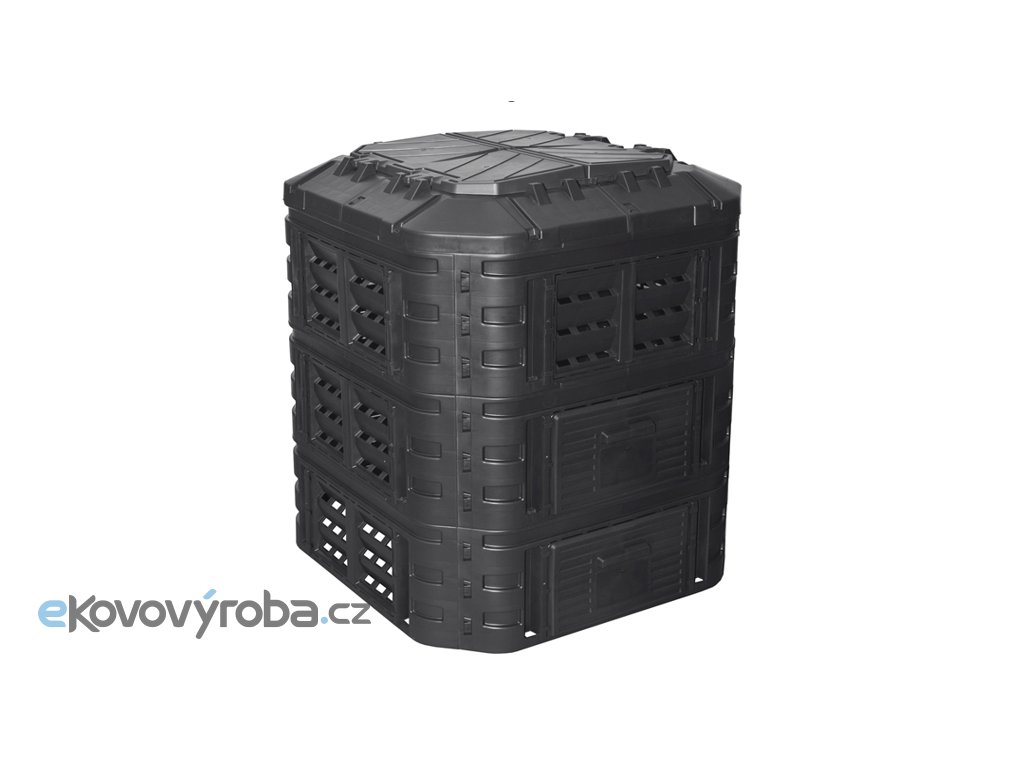Plastový kompostér o objemu 860 L z velmi pevného polypropylenu. Konstrukce zajišťuje cirkulaci vzduchu a urychluje rozkladný proces. Součástí výrobku je víko i boční dvířka pro snadné vyjímání kompostu. Kompostér je odolný vůči povětrnostním podmínkám, UV záření a můžete ho mít venku za každého počasí -30 °C až 45 °C. Montáž je velmi jednoduchá, díky CLICK systému není zapotřebí žádné nářadí. Vyrobeno z recyklovaného materiálu. Výhody kompostéru: Systém kapkové závlahy Otvor pro visací zámek Pevné boční západky Zavlažování a provzdušňování Pevné panty poklopů Pohodlná rukojeť Velká posuvná dvířka s pohodlnými držáky Montáž zemních kotev