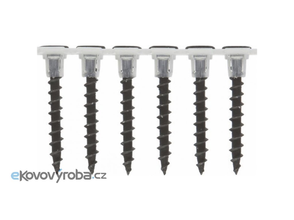 Samořezné šrouby (vruty), určené k připevňování sádrokartonových desek na kovové nebo dřevěné nosné konstrukce.
