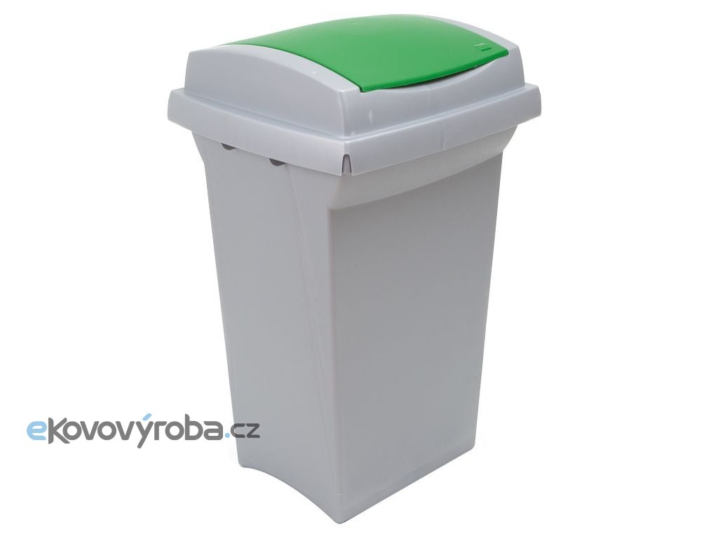 Odpadkový koš na tříděný odpad RECYCLING 50 l, šedá nádoba, zelené víko