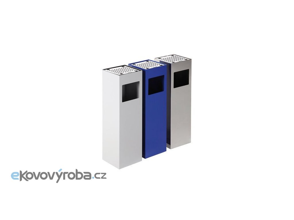 Vyrobeno z ocelového plechu. Koše jsou vybaveny nerezovým popelníkem. Vybaveno vyjímatelnou záchytnou vaničkou umístěnou pod popelníkem. Povrchová úprava provedena práškovou barvou nebo z leštěného nerezu.