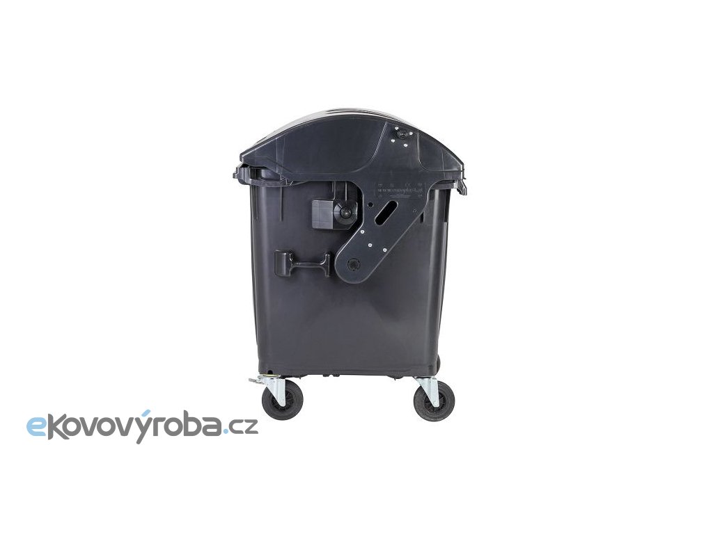 Plastový kontejner o objemu 1100 l s kulatým víkem. Vybaveno 4x kolečkem - 2x bržděné s průměrem 200 mm. V souladu s EN 840. Odolné vůči UV záření, chemickým a biologickým vlivům nebo mrazu. Hladké plochy zabraňují ulpívání odpadu. Výrobní materiál neobsahuje kadmium a může být znovu kranulován.