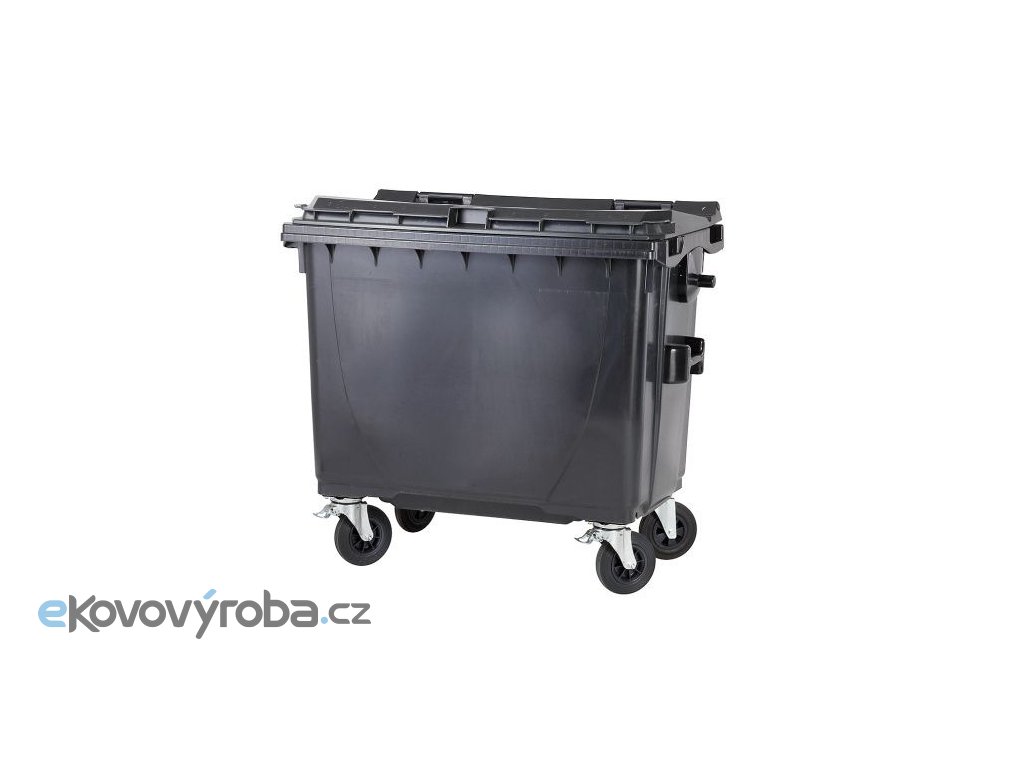 Plastový kontejner o objemu 660 l s plochým víkem. Vybaveno 4x kolečkem - 2x bržděné s průměrem 200 mm. V souladu s EN 840. Odolné vůči UV záření, chemickým a biologickým vlivům nebo mrazu. Hladké plochy zabraňují ulpívání odpadu. Výrobní materiál neobsahuje kadmium a může být znovu kranulován.