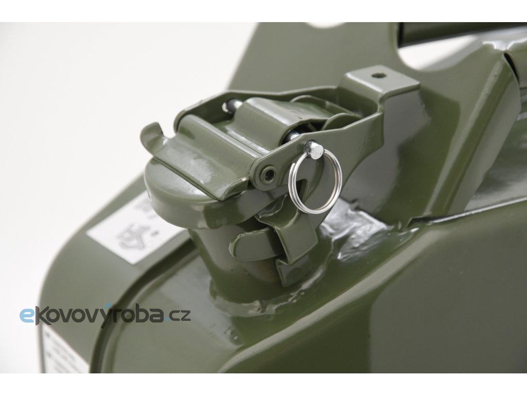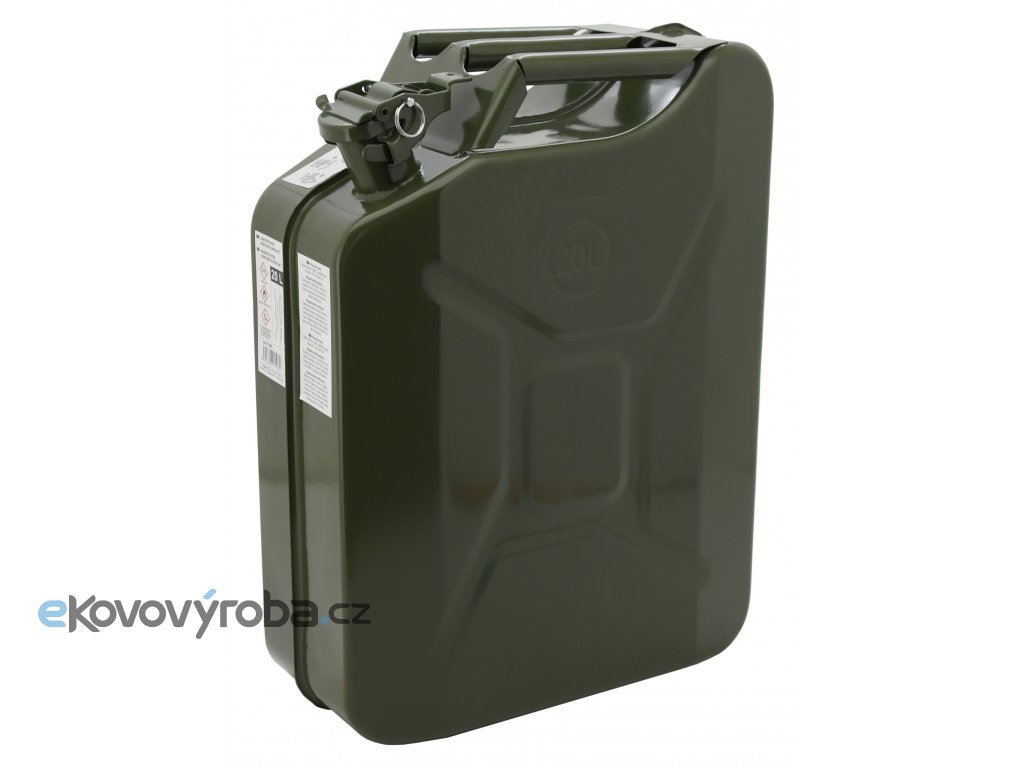 Kovový kanystr na pohonné hmoty o objemu 20 l.