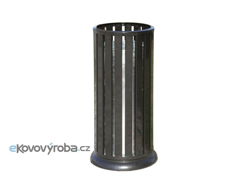 Ocelový odpadkový koš o objemu 55 l. Vyrobeno z kvalitní oceli. Jednoduchá konstrukce s vysokou mechanickou odolností. Vyšší hmotnost a širší základna zajišťují dobrou stabilitu. Koš je vybaven vyjímatelnou vložkou z pozinkovaného plechu. Vložka je vybavena vnitřními úchyty pro snadné vyjmutí. Povrchová úprava je provedena nátěrem práškovou barvou. Možnost přikotvit k podlaze – otvor 3x průměr 10 mm. Vložka otvory opatřena není.