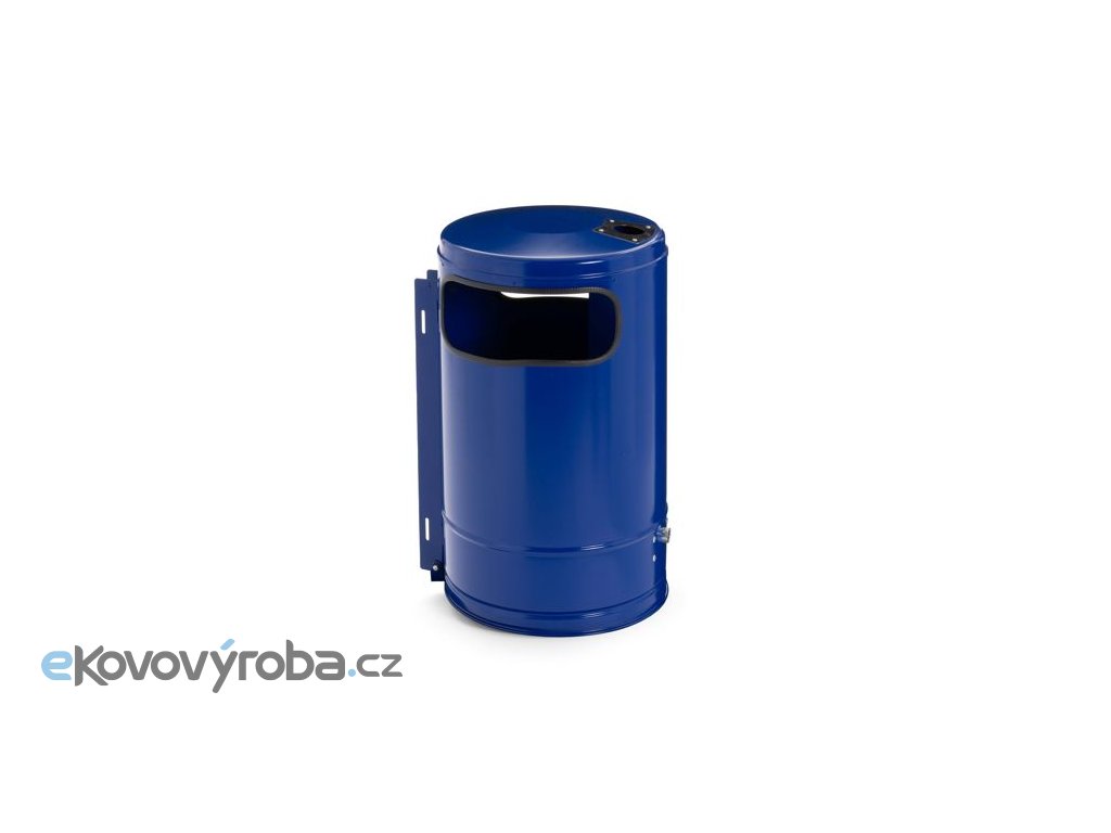 Venkovní odpadkový koš bez stojiny o objemu 42 l.Vyrobeno z pozinkovaného ocelového plechu.Koš je vyroben z ocelového plechu o tloušťce 0,8 mm.Krytka je vyrobena z nerezového plechu o tloušťce 0,5 mmZávěs je vyroben z plechu o tloušťce 2 mm.Tvar a umístění vhozů zajišťují ochranu před dešťovou vodou a vhazování nadměrných předmětů.Výklopné dno umožňuje snadné vyprazdňování bez manuálního kontaktu s odpadky.Spodní víko se otevírá pomocí univerzálního zámku.Koš je vybaven popelníkem s krytkou z nerezového plechu.Povrchová úprava je provedena lakováním.